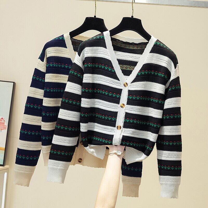 LJSXLS 2021 秋ジャカードニットカーディガン女性 V ネックルーズセーターコート甘い長袖トップス ロング 大人ガーリー スウィート キュート カジュアル オータム 秋物 Vネック Son11505080966