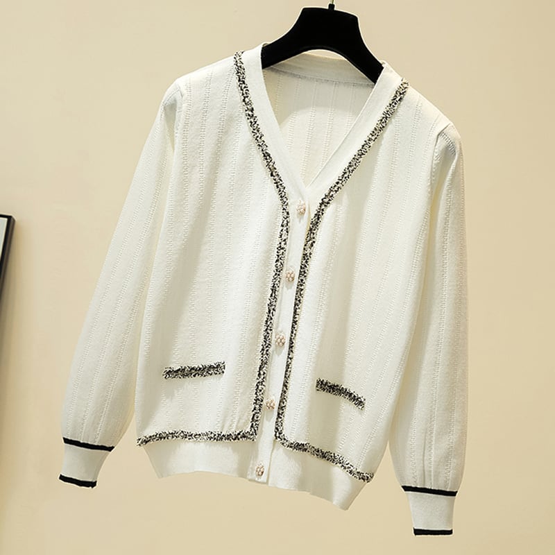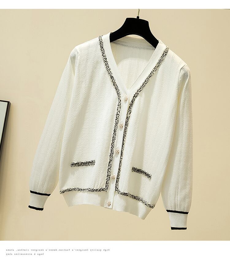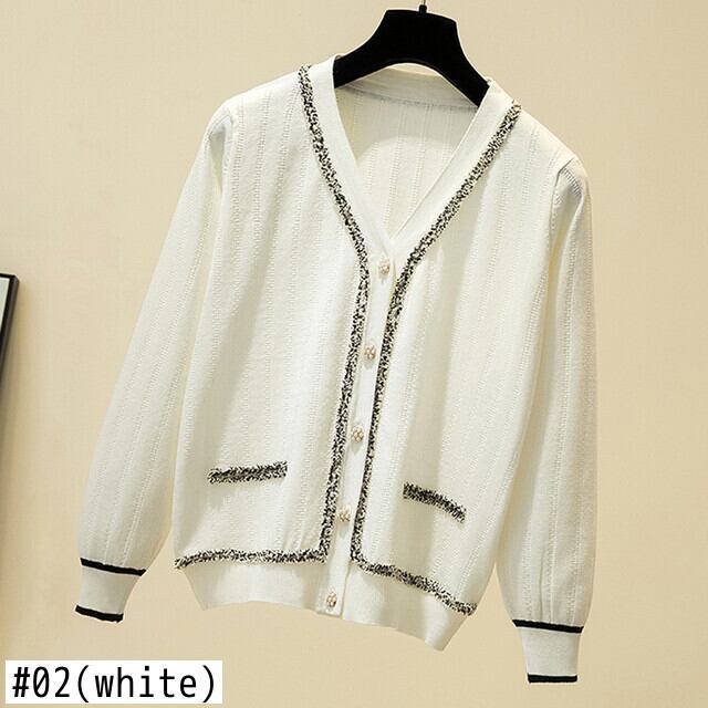 LJSXLS セーターカーディガン女性 2021 秋冬 V ネックパールシングルブレストルーズホワイトセーター長袖ニットトップス ロング オータム 秋物 ウィンター 冬物 Vネック 真珠 Son52549712674