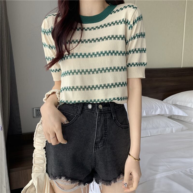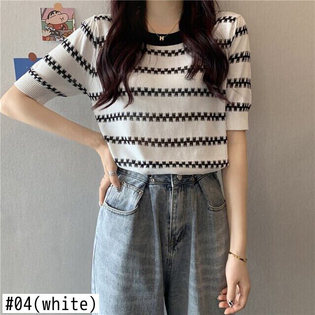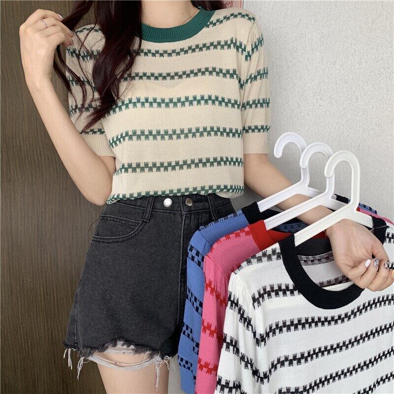LJSXLS ストライプ Tシャツ女性ニット O ネック半袖 Tシャツトップス夏の女性服 Camisetas デ ショート ハーフスリーブ サマー 夏物 Oネック Son51793098282