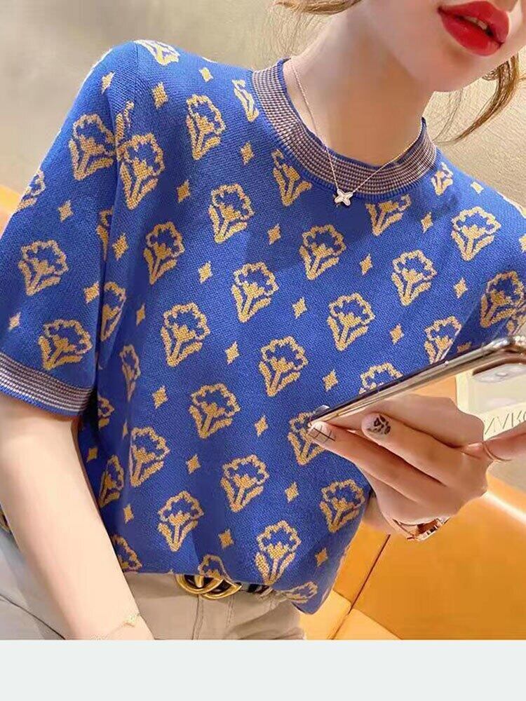 印刷 Tシャツ女性半袖 Tシャツニットトップス 2022 女性服夏 O ネック Tシャツ ショート ハーフスリーブ サマー 夏物 Oネック Son26100435258