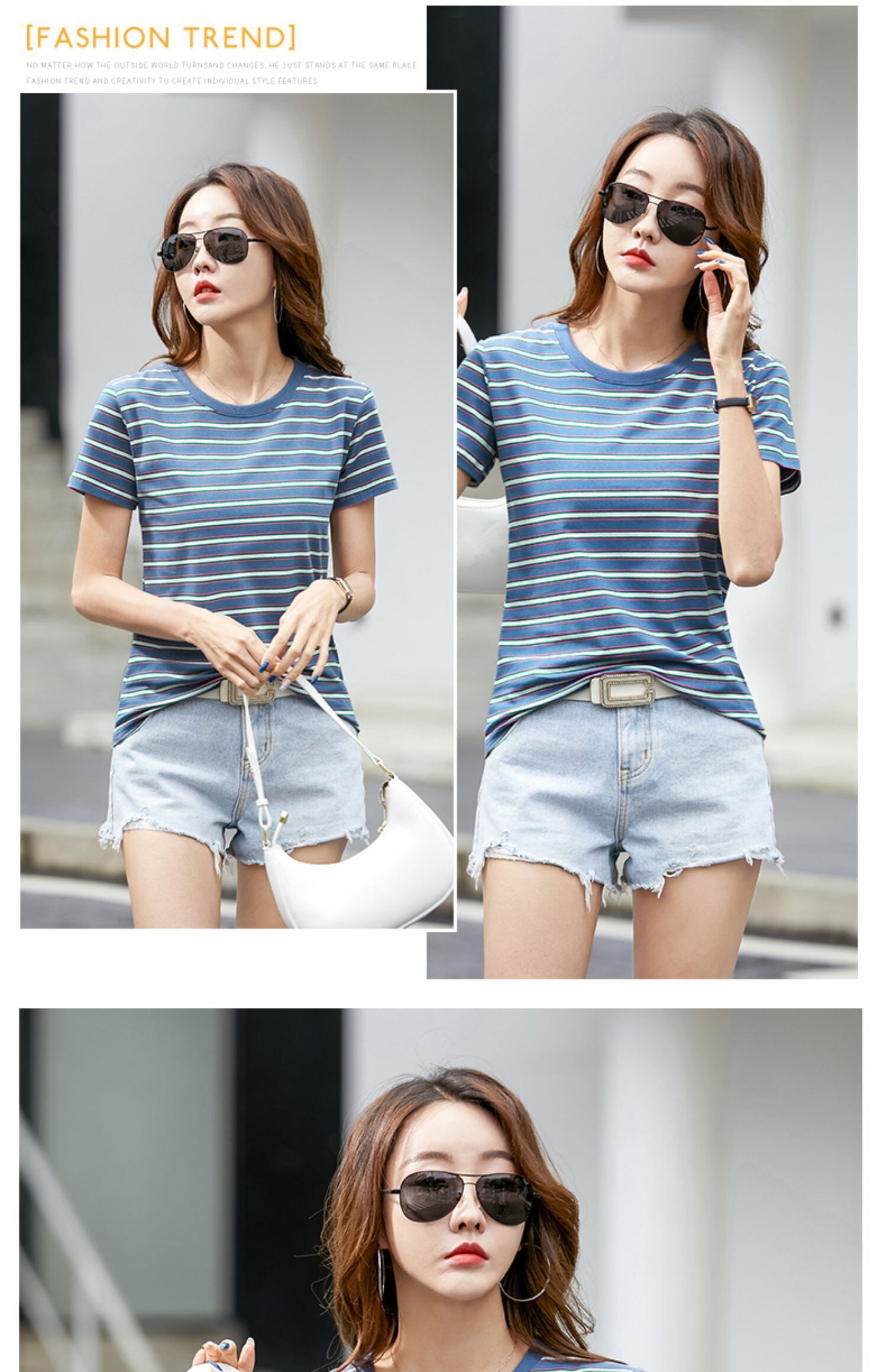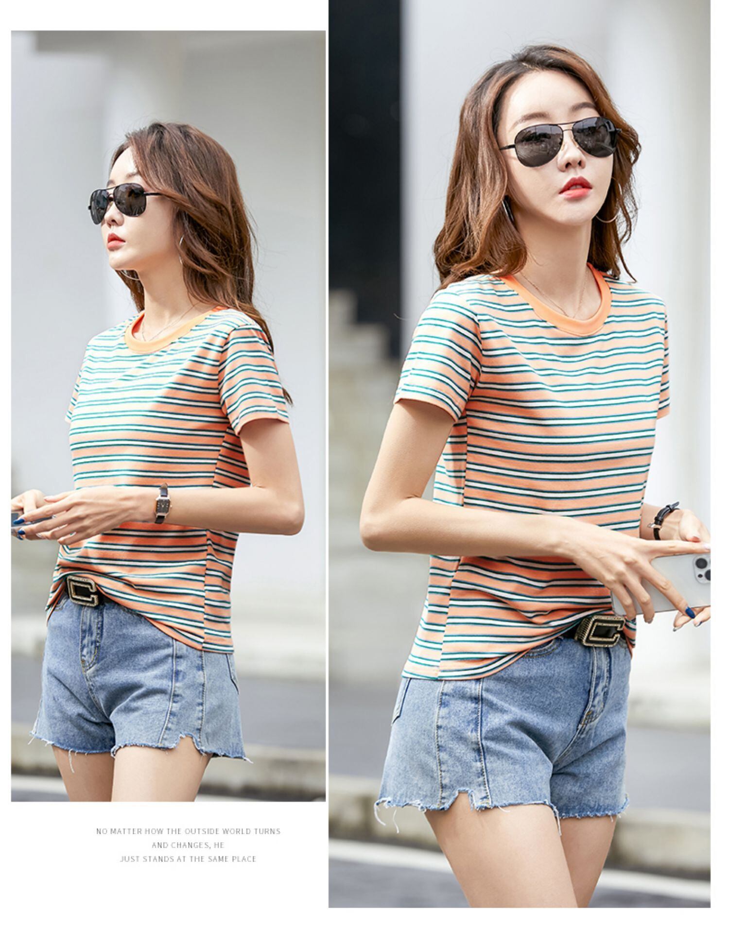 トップストライプ Tシャツの女性の綿の Tシャツの女性の半袖 Tシャツ 2022 夏 Tシャツ ショート コットン ハーフスリーブ サマー 夏物 Son60566351046