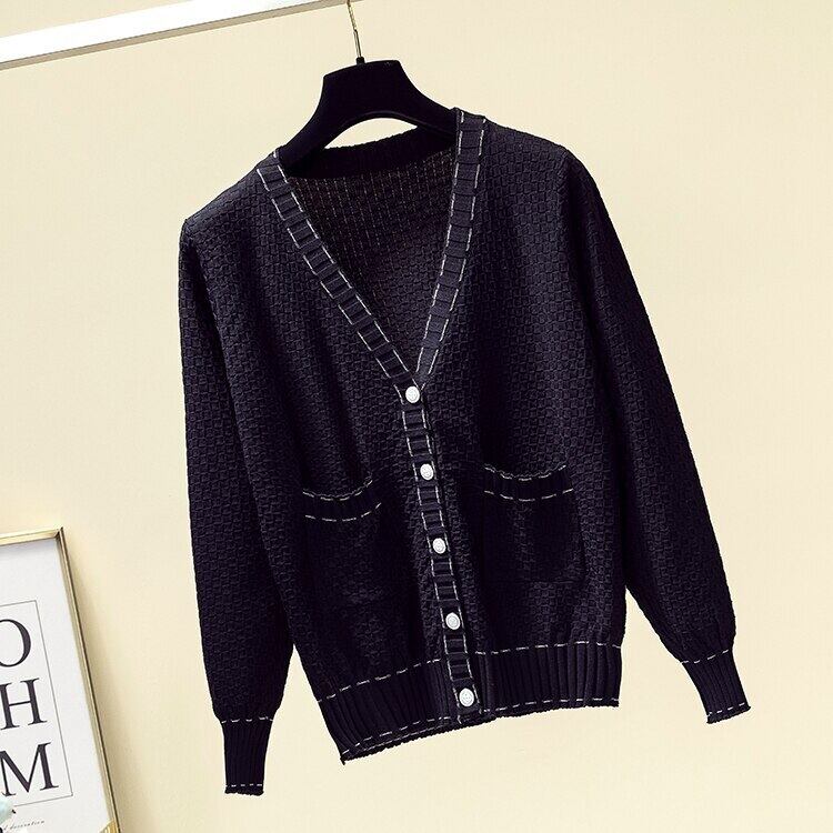 スタイル V ネック女性ニットカーディガンセーター 2022 春秋ルーズブラックトップスセーターコート スプリング 春物 オータム 秋物 Vネック Son6866750396