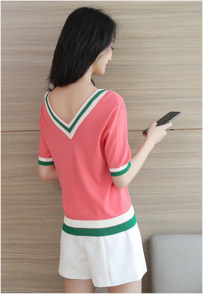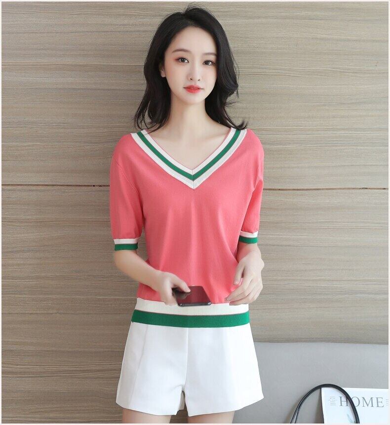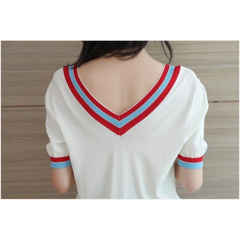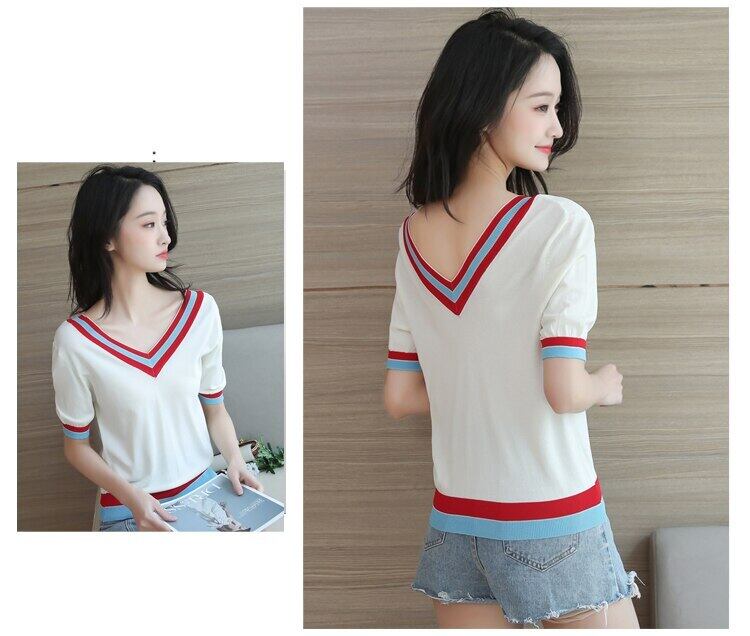 LJSXLS セクシーな V ネックニット Tシャツレディース半袖 Tシャツトップス白 Tシャツ 2021 夏服女性 ショート ホワイト ハーフスリーブ サマー 夏物 Vネック Son69253776904