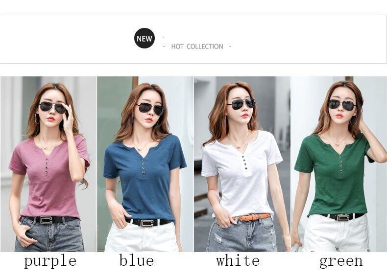 LJSXLS 夏ボタンコットン Tシャツ半袖スリム Tシャツ 2022 女性 Tシャツ S-3XL ショート ハーフスリーブ サマー 夏物 Son23902244054