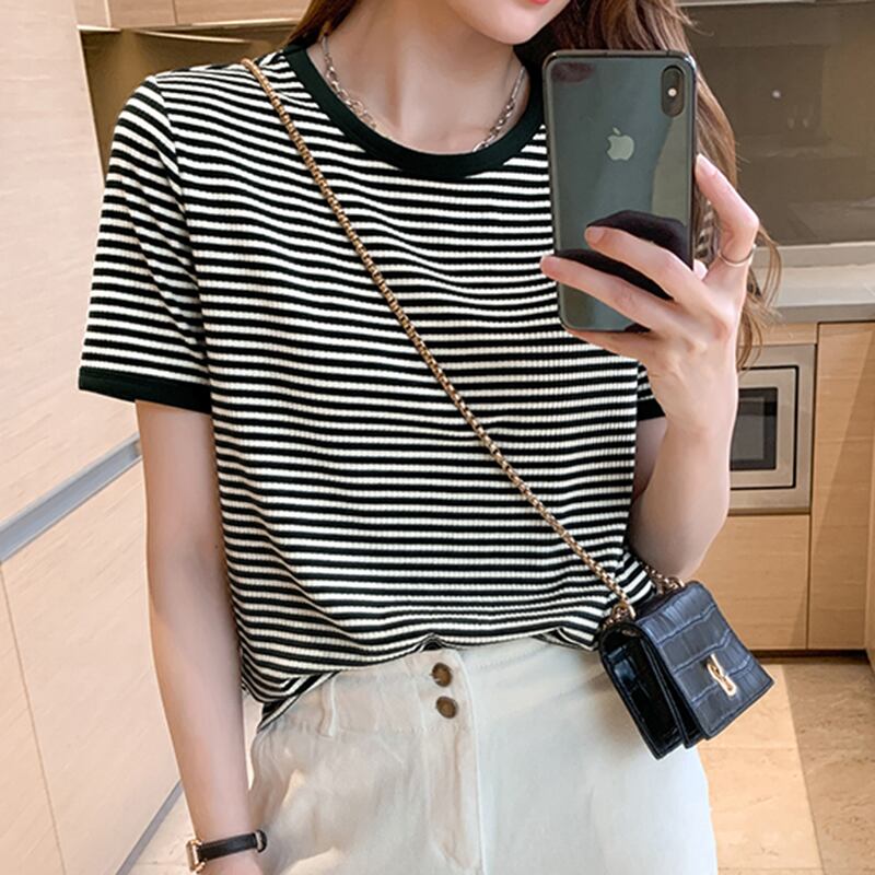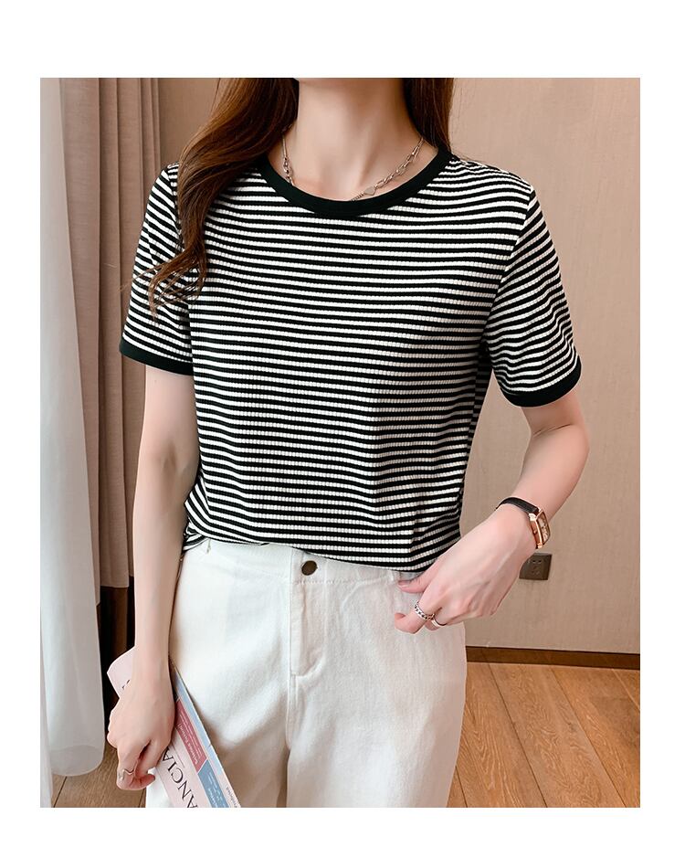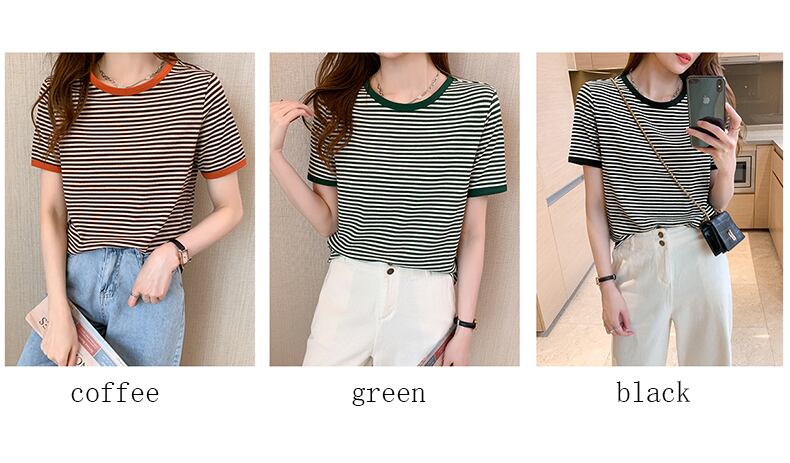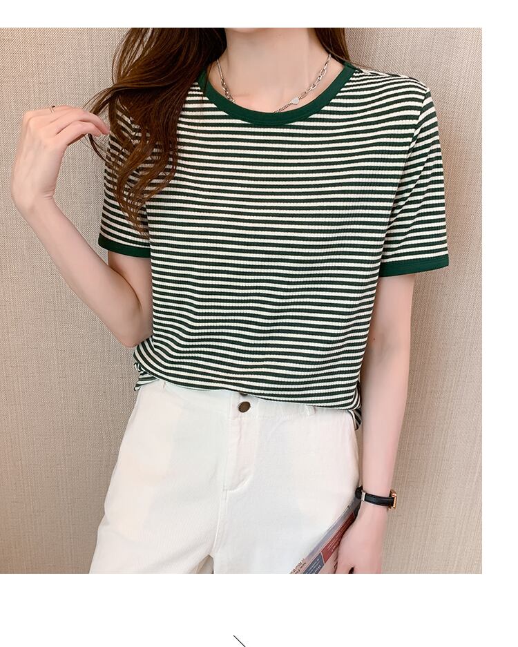 LJSXLS Tシャツ 2022 夏ストライプ Tシャツ女性の綿半袖 Tシャツ服 ese トップス ショート コットン ハーフスリーブ サマー 夏物 Son92546611787