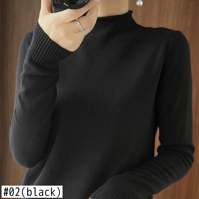 2021 秋冬ハーフカラー基本固体セータープルオーバー女性長袖ニットトップソフト暖かいセーター ロング オータム 秋物 ウィンター 冬物 ソリッドカラー Son32647645683