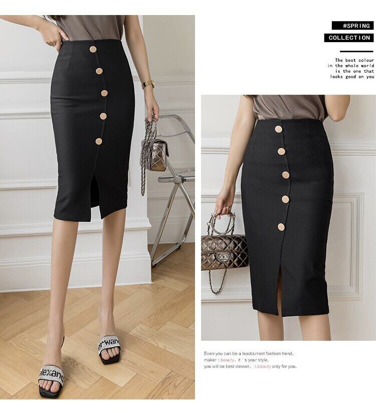 LJSXLS ブレストスカート女性オフィスレディボディコンジッパーウエストペンシルブラックスカート 2022 春秋ペチコート スプリング 春物 オータム 秋物 会社 学校 通勤や通学にも Son61833981926