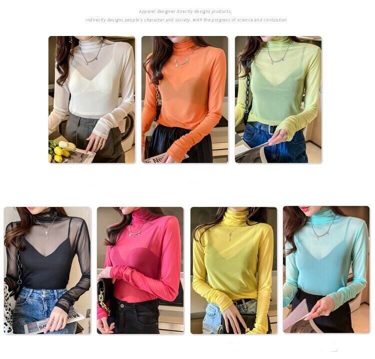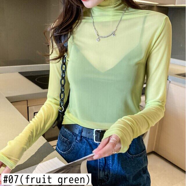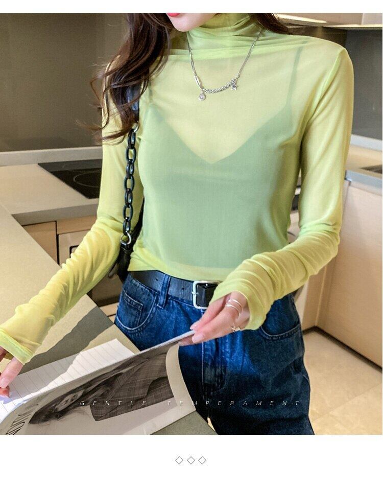 LJSXLS 2022 夏の女性のセクシーなシースルーブラウスキャンディーカラーメッシュトップス透明白長袖シャツ Y ロング ホワイト サマー 夏物 Son99823355207