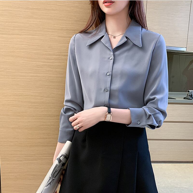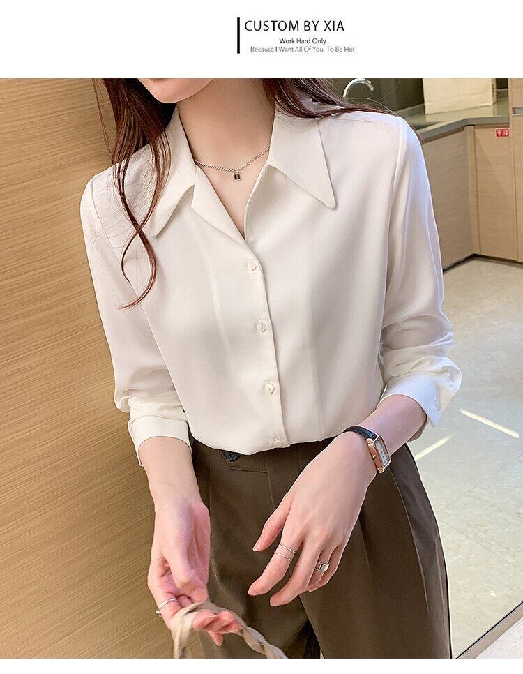 LJSXLS 秋ボタンシャツシフォンブラウス女性ホワイトレディ長袖ルーズシャツベーシック 2022 ロング オータム 秋物 Son49463072130
