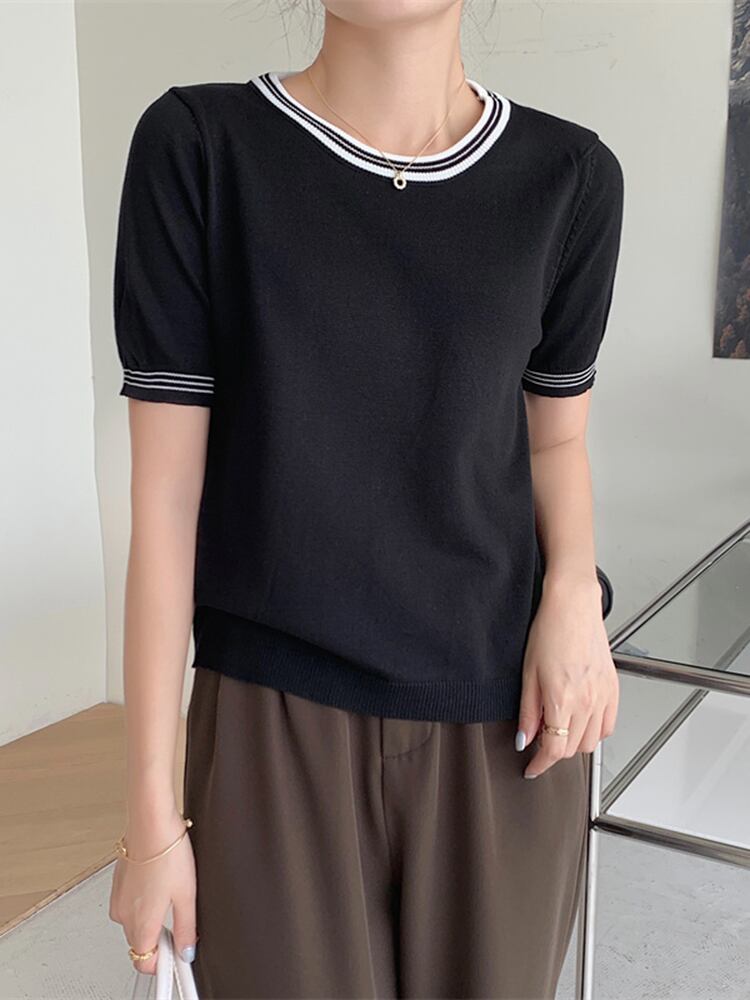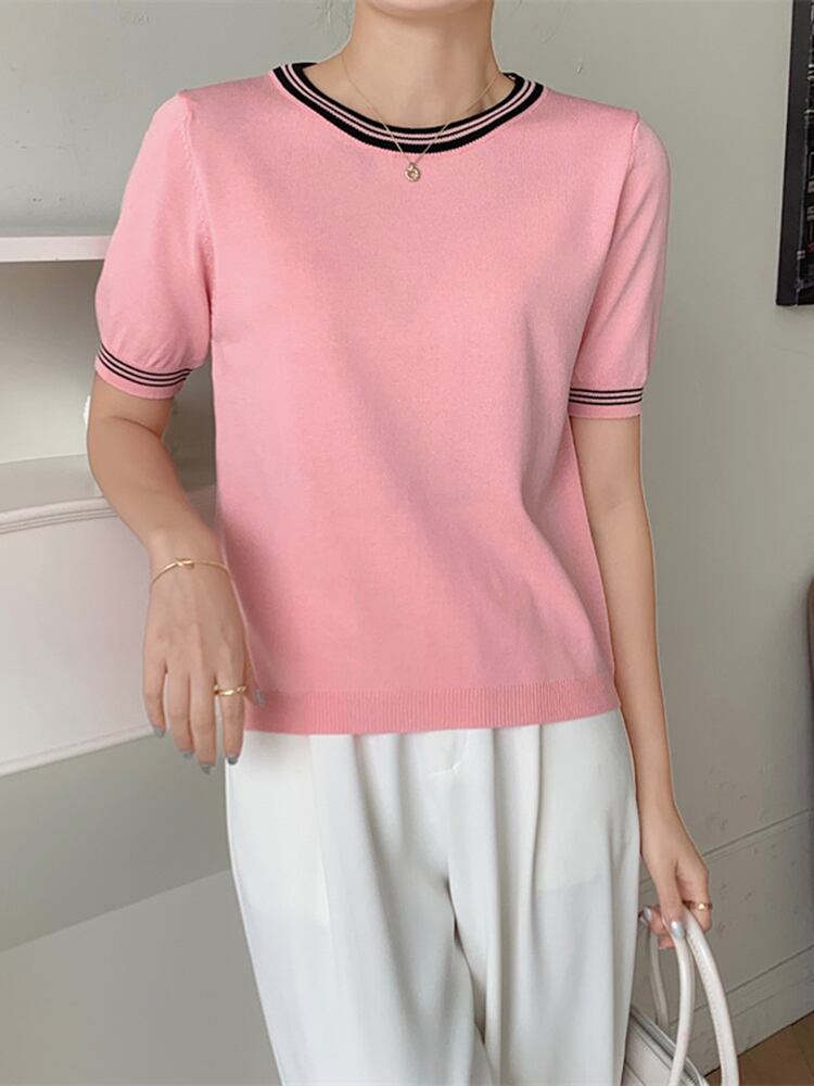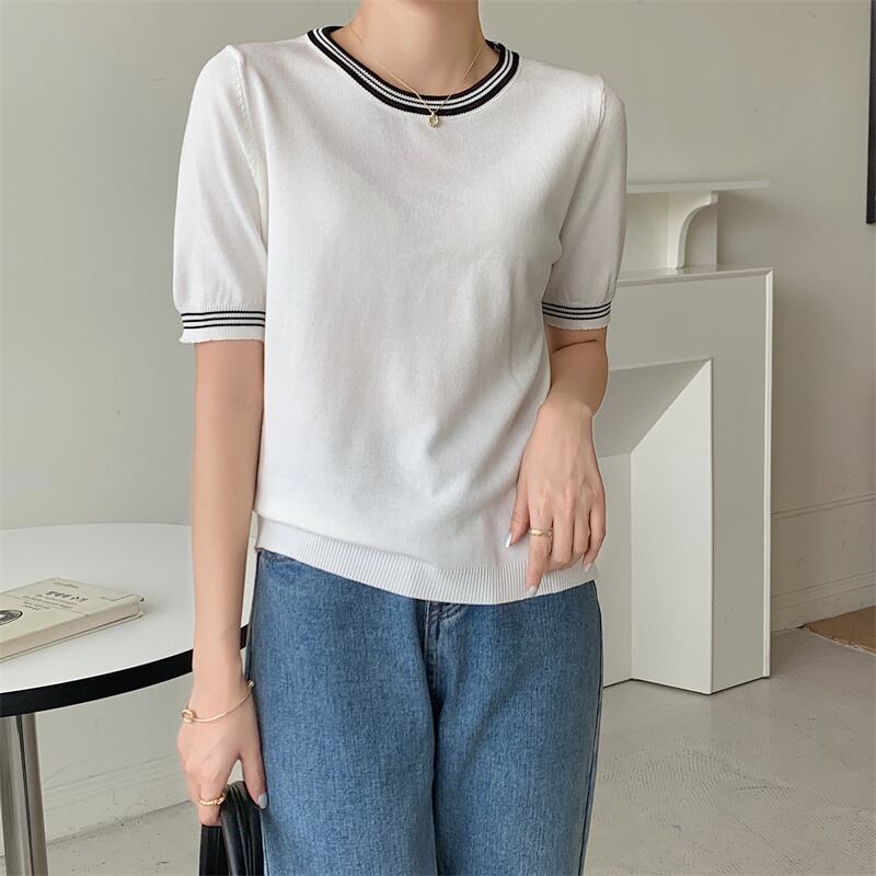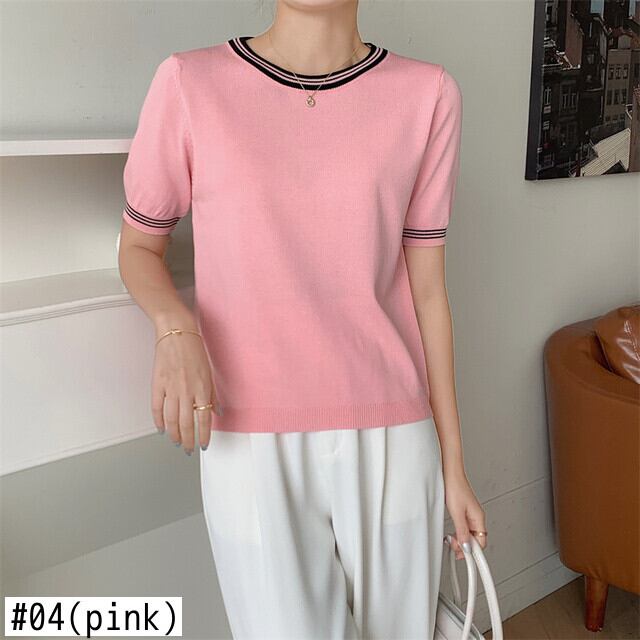 ピンク Tシャツ 2022 夏 O ネック半袖 Tシャツ女性ニット Tシャツオフホワイト薄いベーシックトップス Ropa ショート ハーフスリーブ サマー 夏物 Oネック Son35232138715
