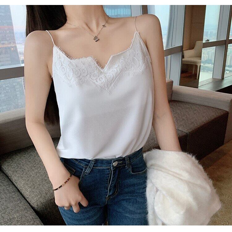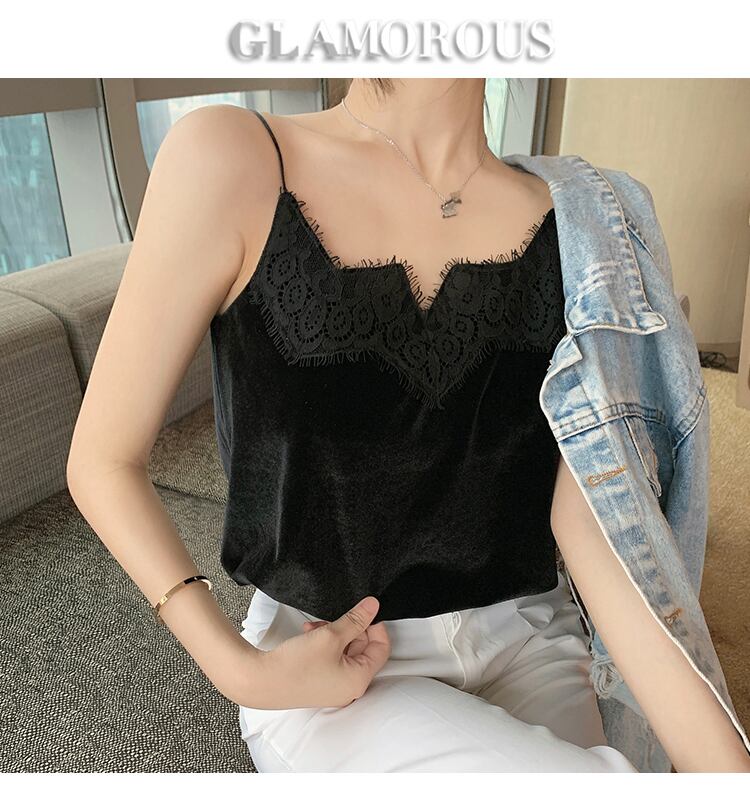 LJSXLS レースパッチワークブラックバックレスキャミソールセクシーなオフショルダートップ夏の女性ホワイトタンクトップ服キャミベルベットベスト女性 サマー 夏物 Son84214061318