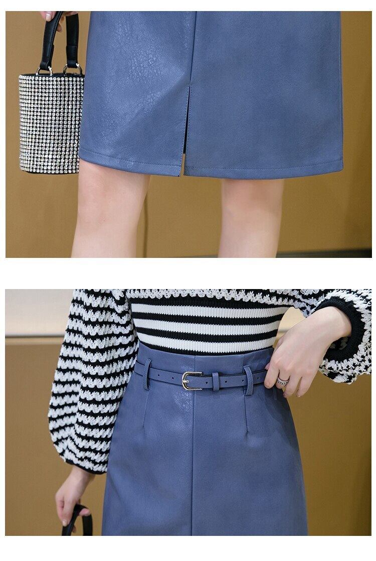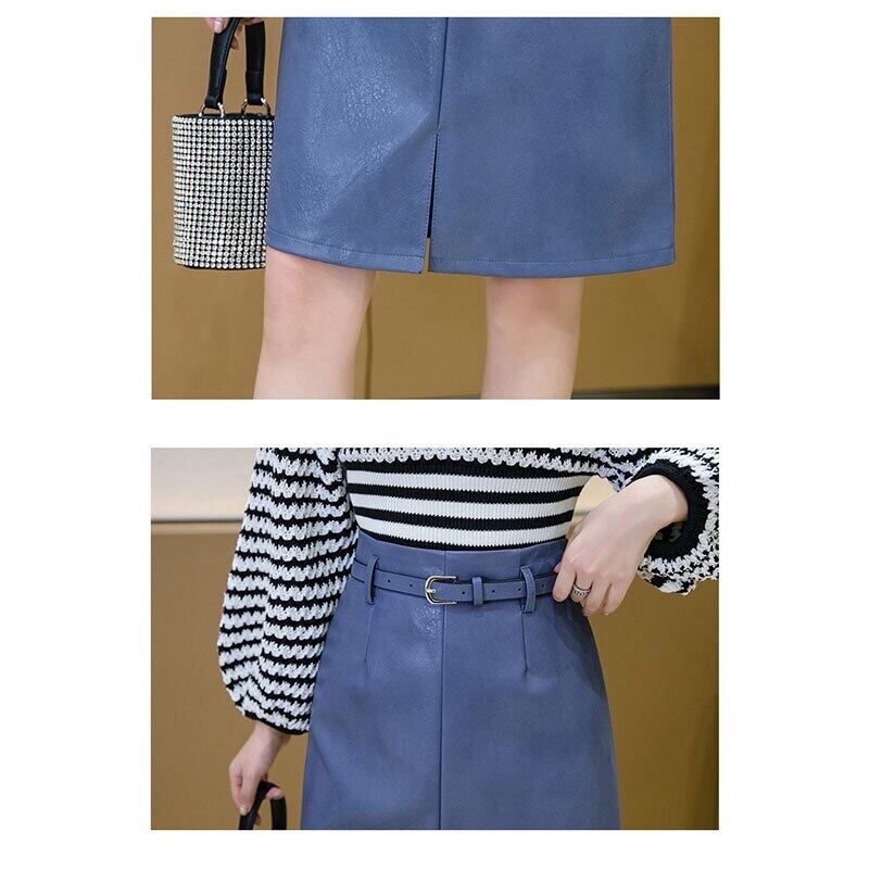 LJSXLS ソリッド レディース PU レザー スプリット スカート オフィス ウエスト Aライン スカート 膝丈 ペチコート 2021 秋冬 オータム 秋物 ウィンター 冬物 ソリッドカラー 会社 学校 通勤や通学にも Son86626295197