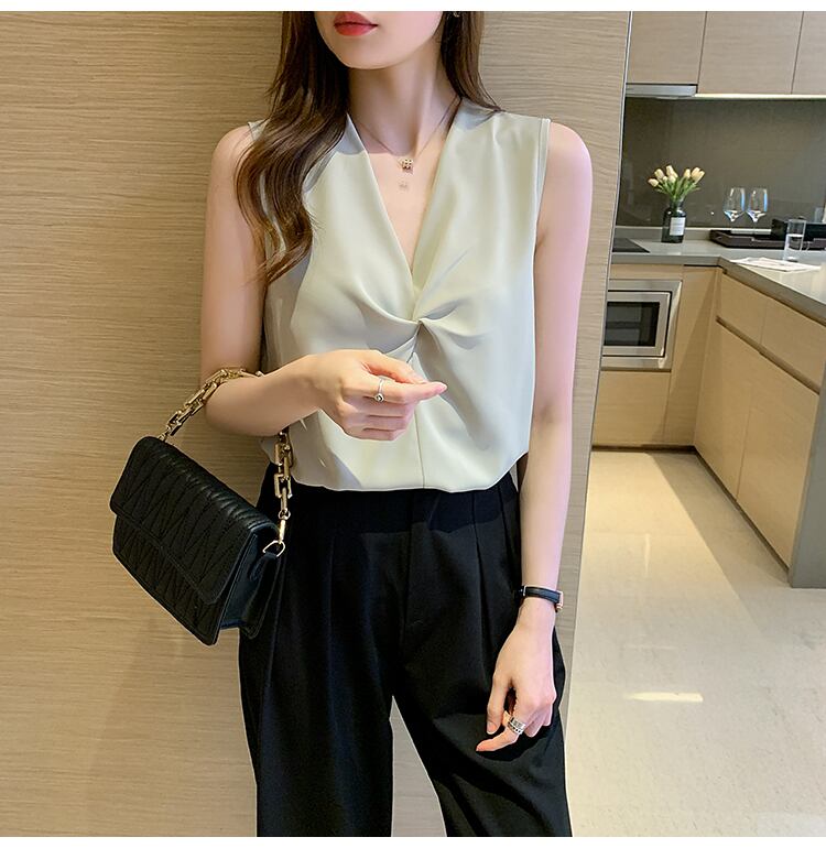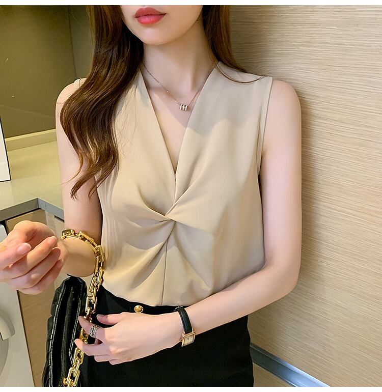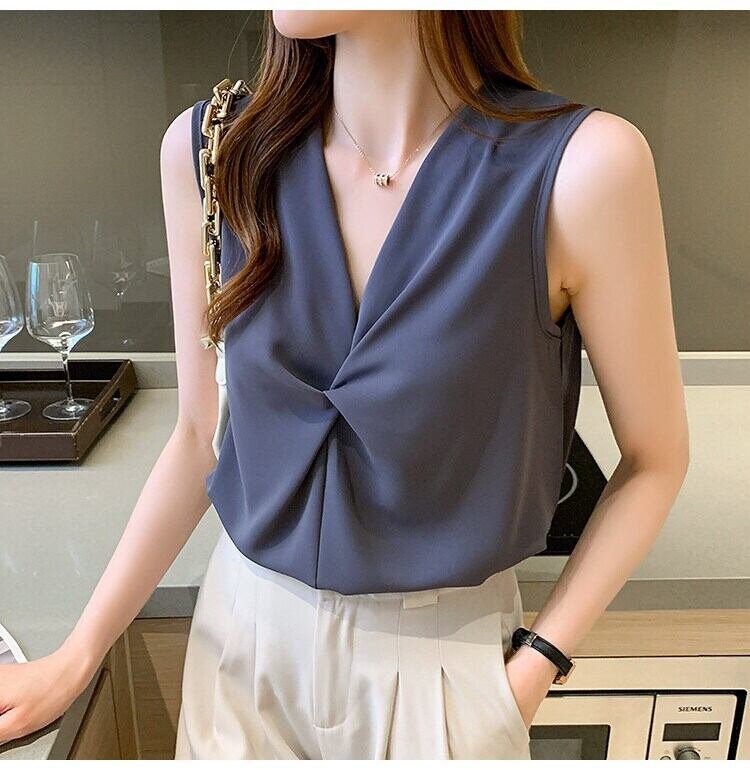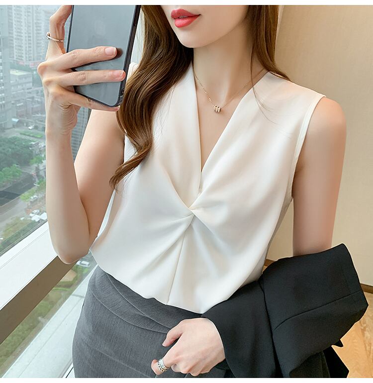 5 色ノースリーブシフォントップス女性 2022 夏ブラウス V ネックルーズオフィスシャツ婦人服 サマー 夏物 Vネック 会社 学校 通勤や通学にも Son45108671924