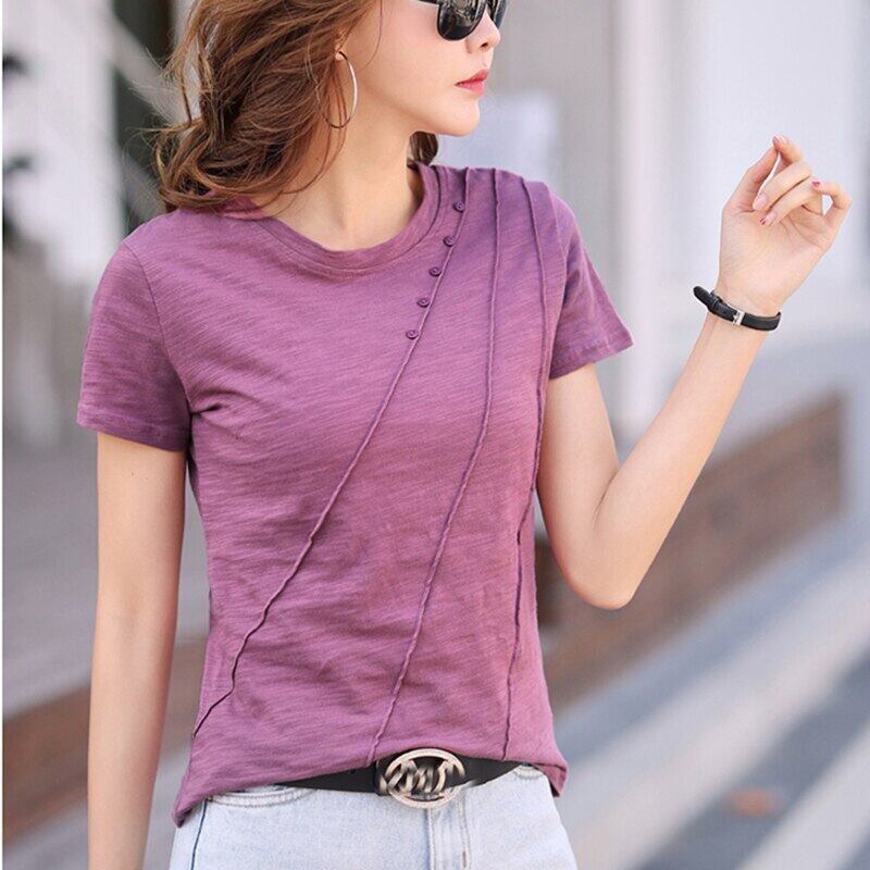 LJSXLS 夏半袖女性の Tシャツコットン Tシャツ女性ソリッドルーズトップコーヒー O ネック Tシャツ 2021 ショート ハーフスリーブ サマー 夏物 Oネック ソリッドカラー Son63974352932