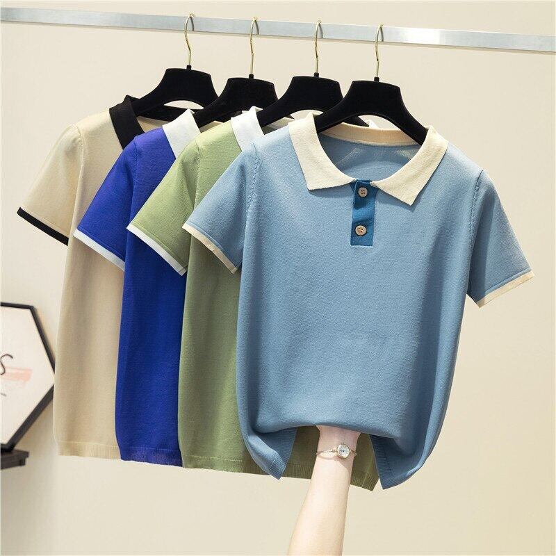 ニット Tシャツ女性半袖夏トップス女性服ブルー Tシャツ Tシャツ Camisetas ショート ハーフスリーブ サマー 夏物 Son26003741243