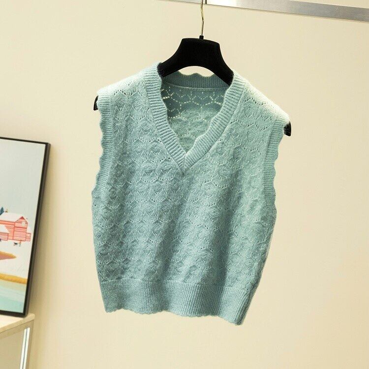 LJSXLS 2021 秋冬ソリッド V ネックニットベスト女性セーター全試合セーターベストノースリーブトップス オータム 秋物 ウィンター 冬物 Vネック ソリッドカラー Son81723958504