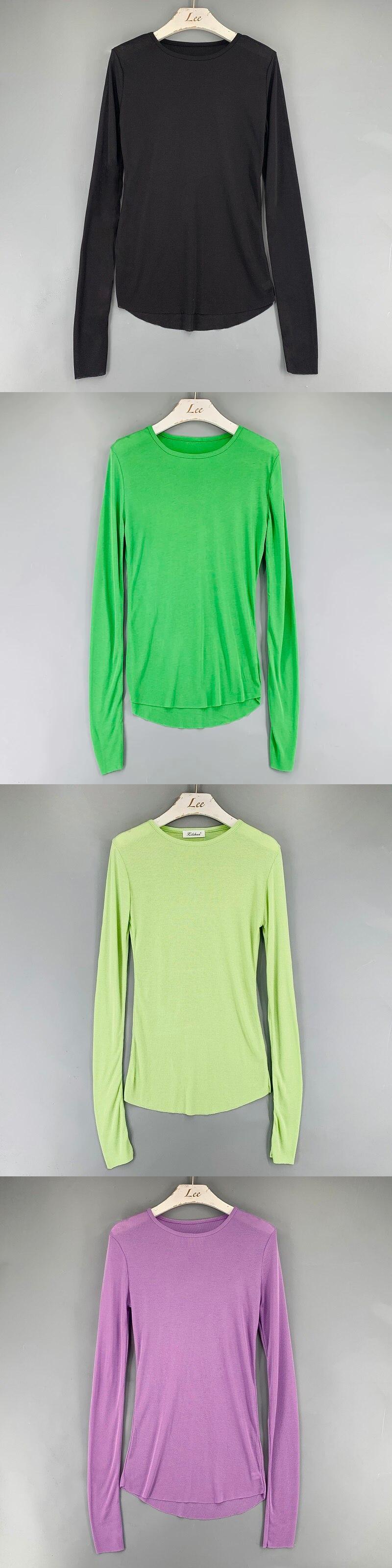LJSXLS 2021 春薄型トップセクシーな Tシャツ女性長袖 Tシャツスタイルの女性の服スリムベーシック Tシャツ ロング スプリング 春物 Son82021094571