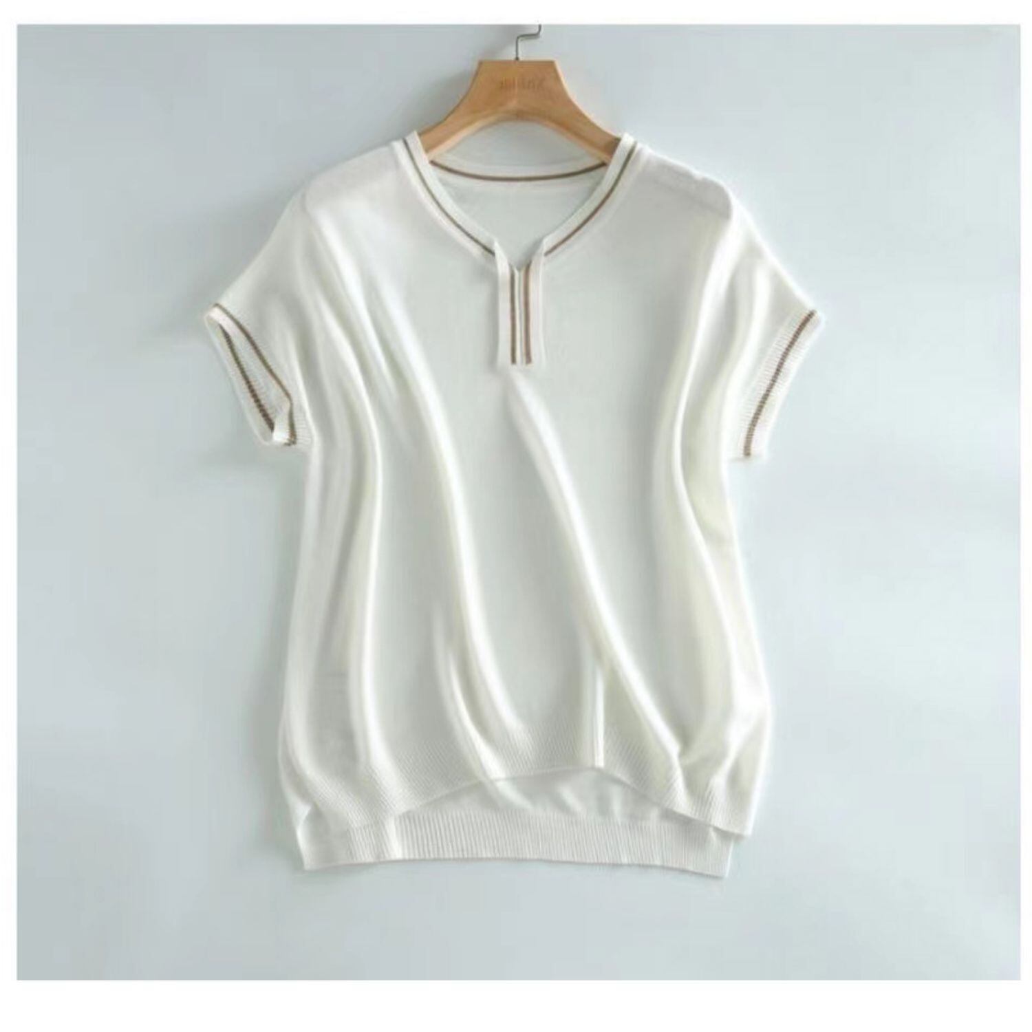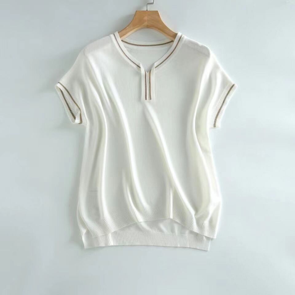 V ネック Tシャツ女性白半袖 Tシャツ女性服夏レディーストップス 2022 ニット Camiseta ショート ホワイト ハーフスリーブ サマー 夏物 Son37973844260