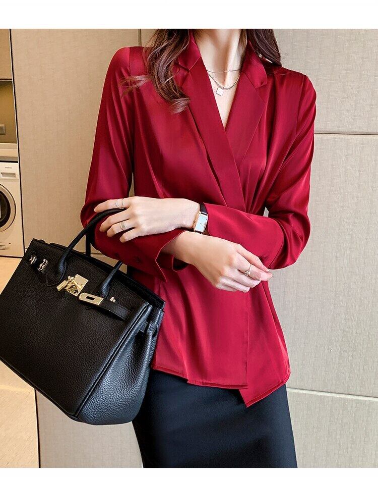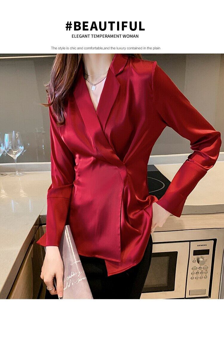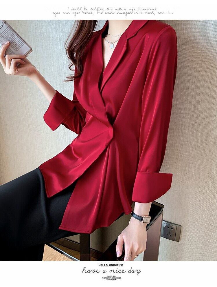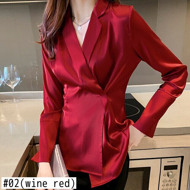 LJSXLS 長袖ブラウス女性シフォンシャツトップス女性春秋 2022 無地ブラウス ロング スプリング 春物 オータム 秋物 ソリッドカラー Son8535882253