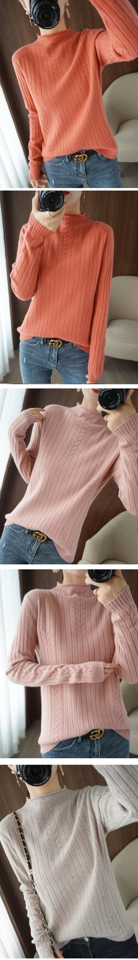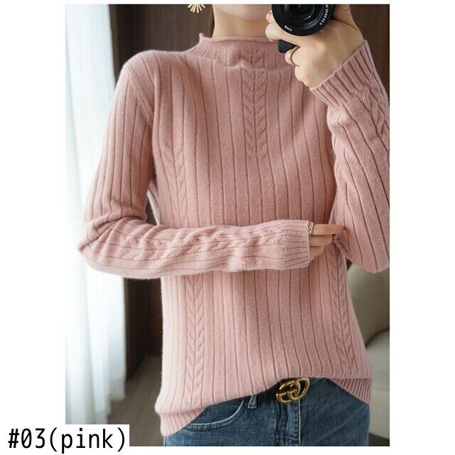 LJSXLS 秋長袖スリム女性セーター 2022 冬レディースハーフタートルネックピンクニットプルオーバー ロング オータム 秋物 ウィンター 冬物 Son25640828703