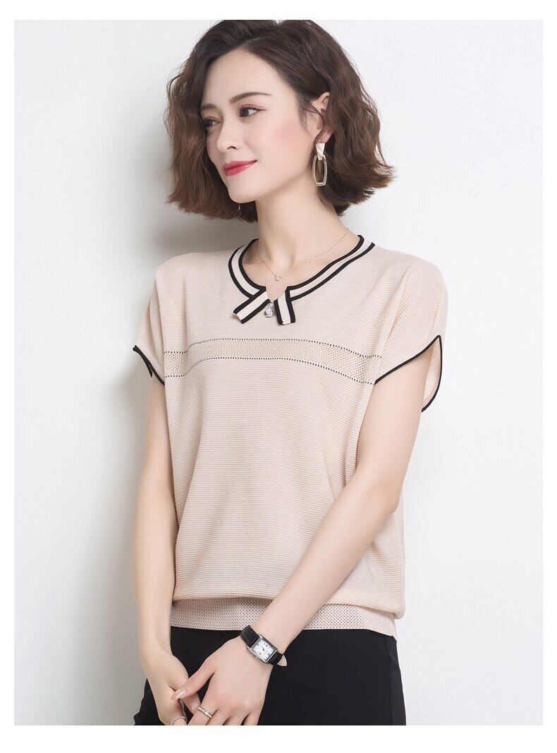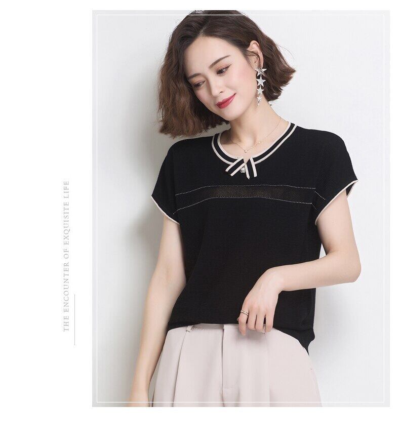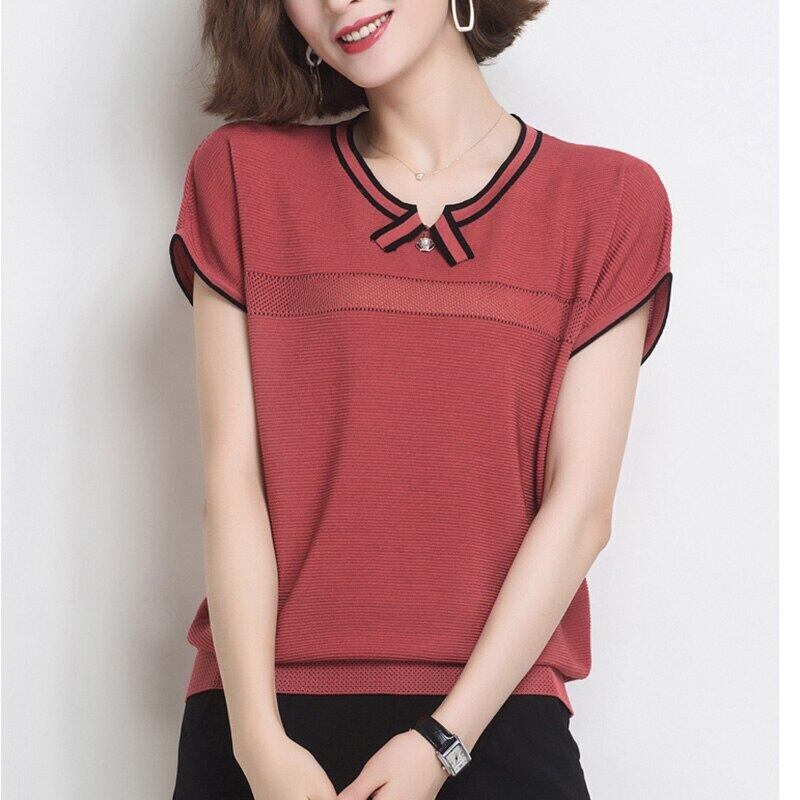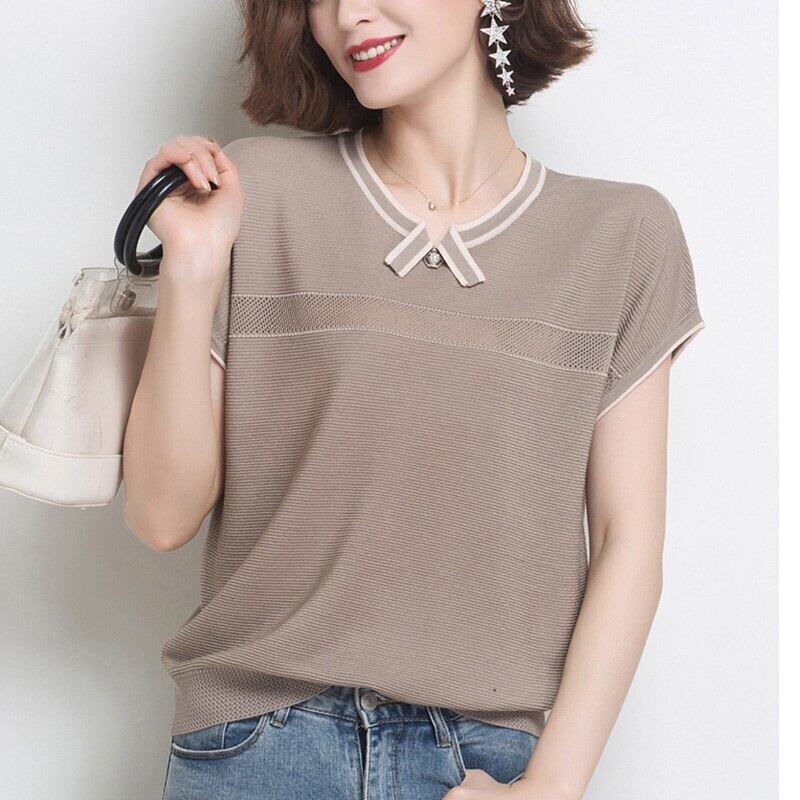 LJSXLS アイスシルクニット半袖 Tシャツ女性の夏のソリッド Tシャツ 2022 ルーズシントップス Camisetas デ ショート ハーフスリーブ サマー 夏物 ソリッドカラー Son10549577738