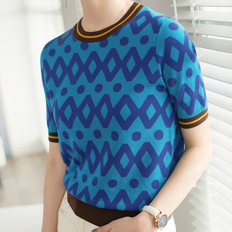 半袖ニットトップス女性ルース O ネックプルオーバーセーター Tシャツ 2023 春夏レディース服プル ショート ハーフスリーブ スプリング 春物 サマー 夏物 Oネック Son8915585093