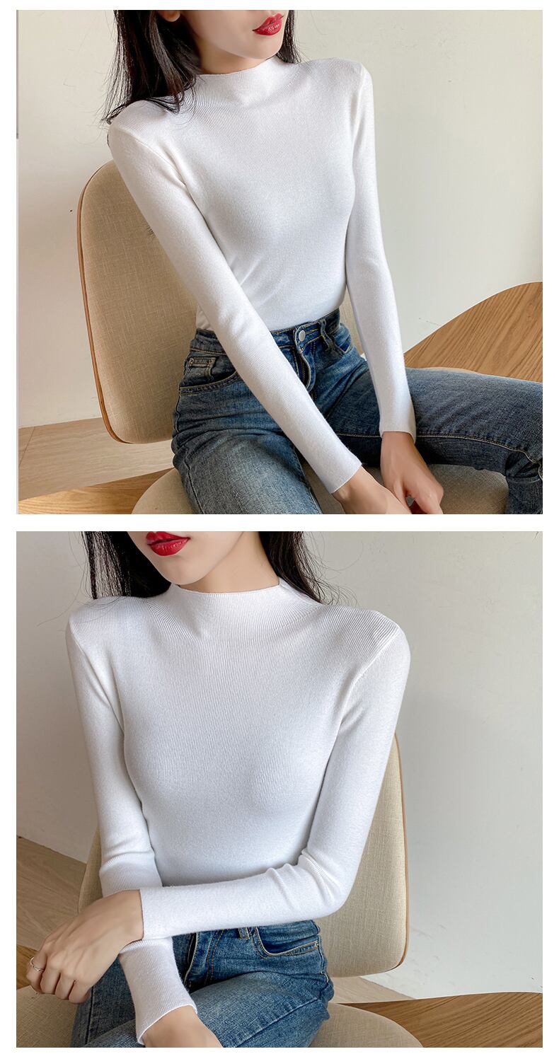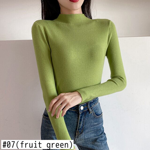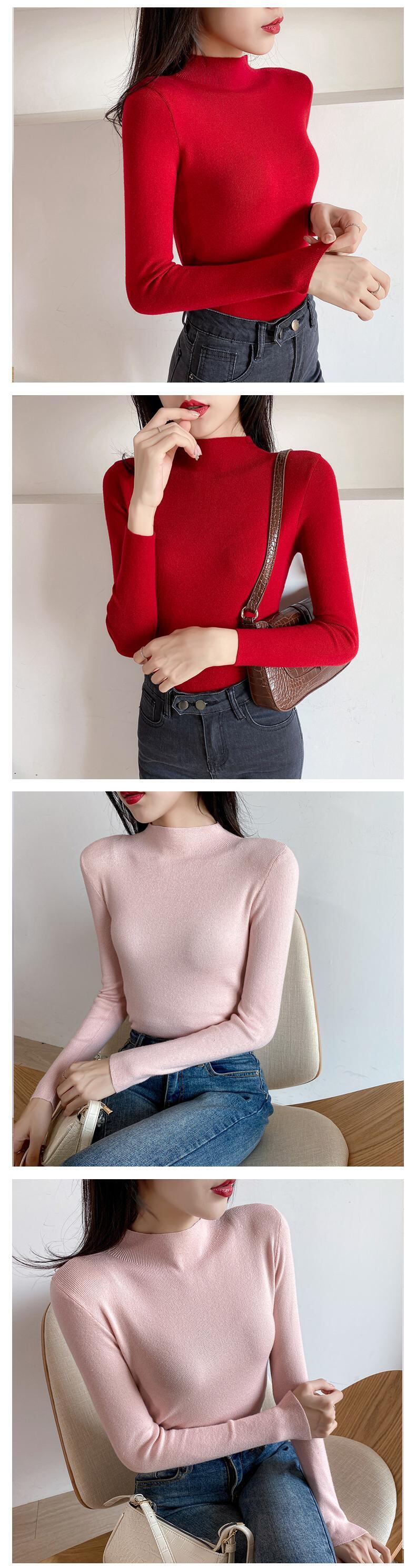 LJSXLS 長袖ベーシック無地トップスハーフカラーセーター女性 2021 秋冬ニットプルオーバー ロング オータム 秋物 ウィンター 冬物 ソリッドカラー Son64727417920