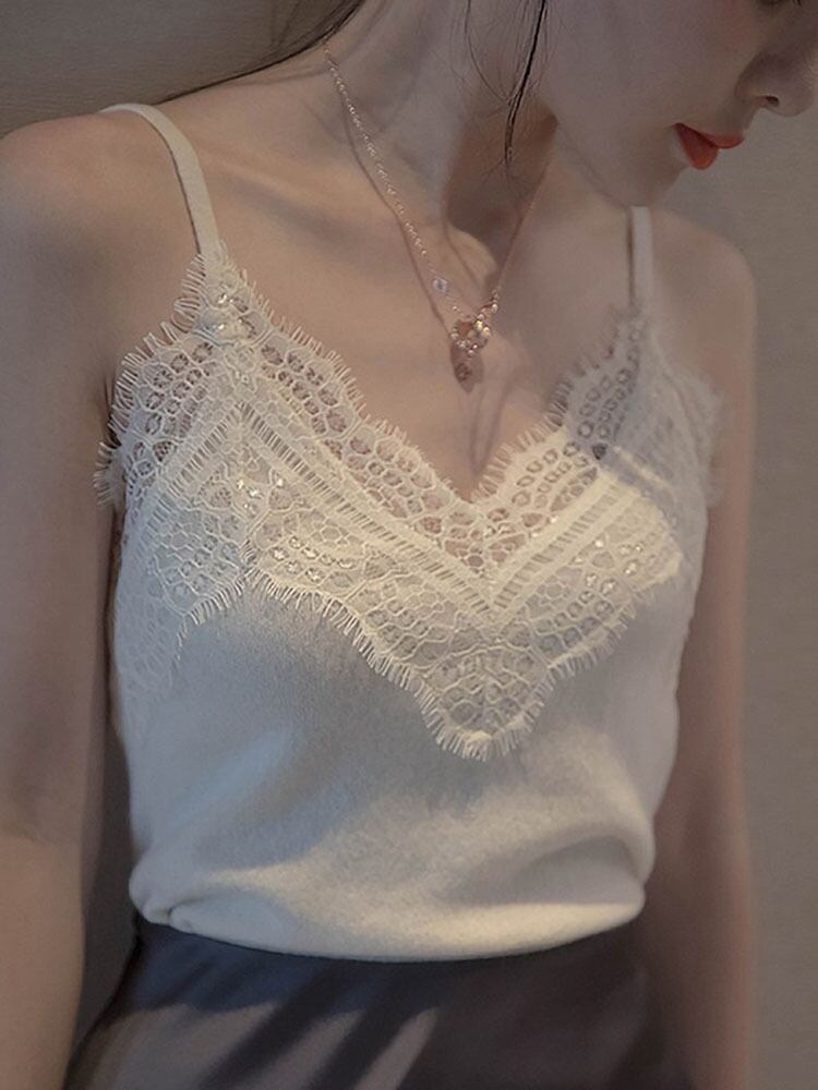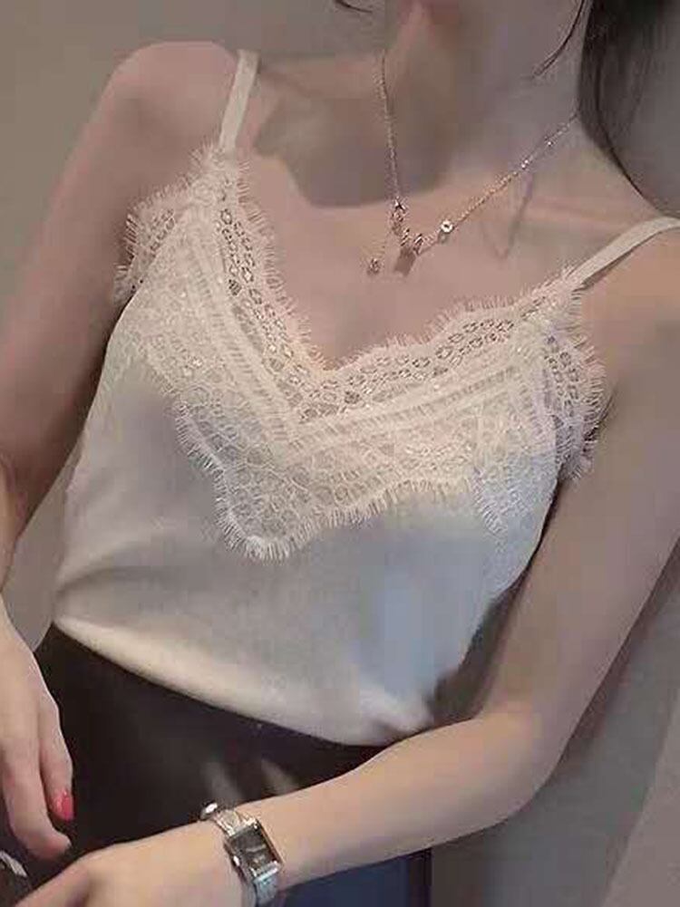 タンクトップの女性のレースのパッチワークキャミソール夏 2022 女性のセクシーなノースリーブベスト女性白タンクキャミソール Haut ホワイト サマー 夏物 Son82922803043