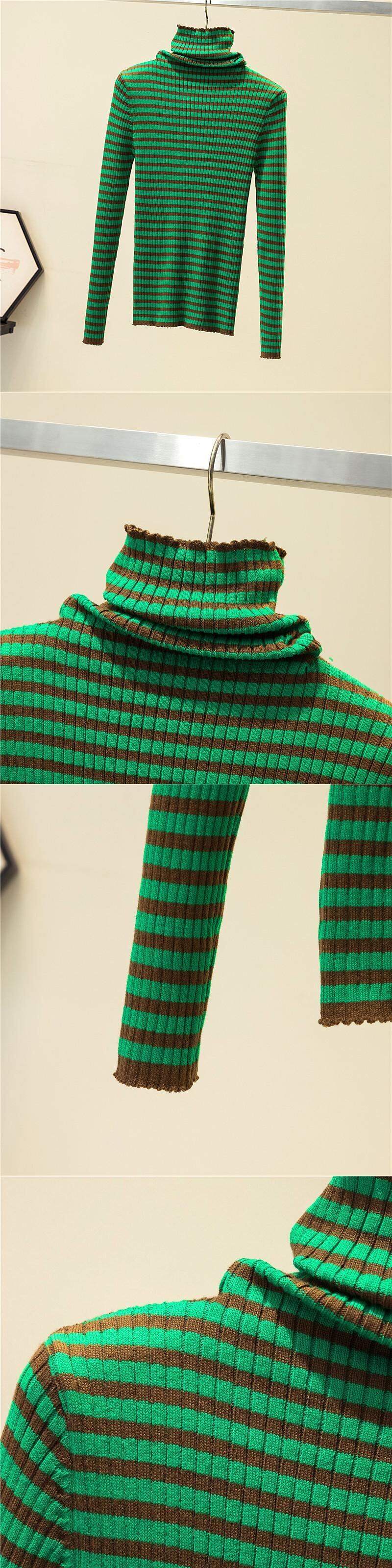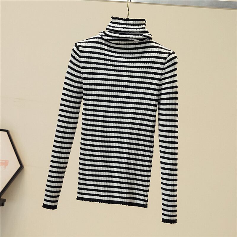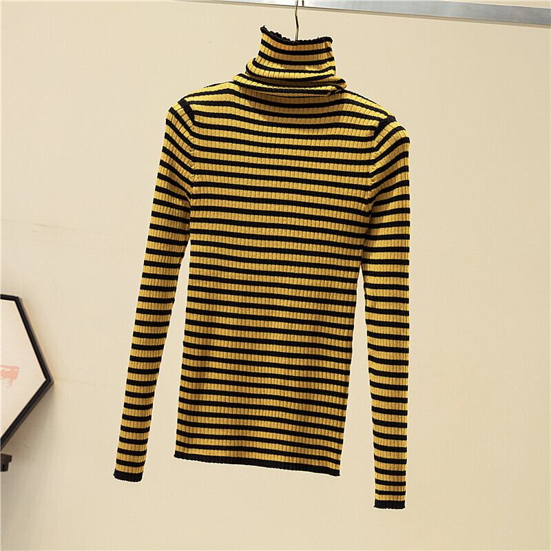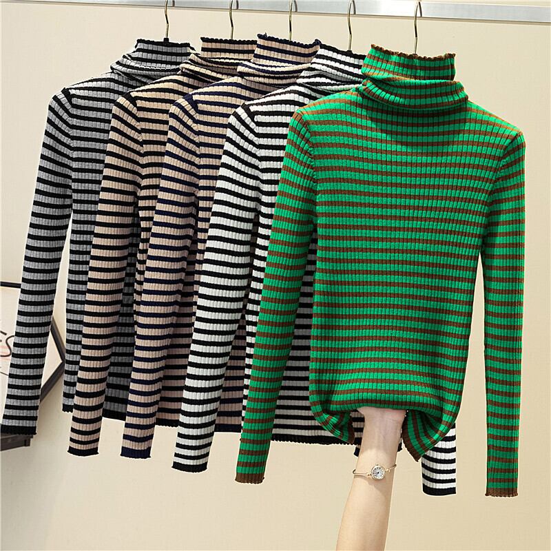 ジャージタートルネックの女性のセーター 2022 ニットストライプセーター冬服女性長袖トッププルオーバー ロング ウィンター 冬物 Son5216317164