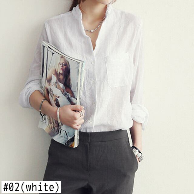 スタイル綿シャツ女性 2022 春秋服長袖白青ルーズブラウスポケットボタン薄いトップス ロング ホワイト ブルー コットン スプリング 春物 オータム 秋物 Son28023546777