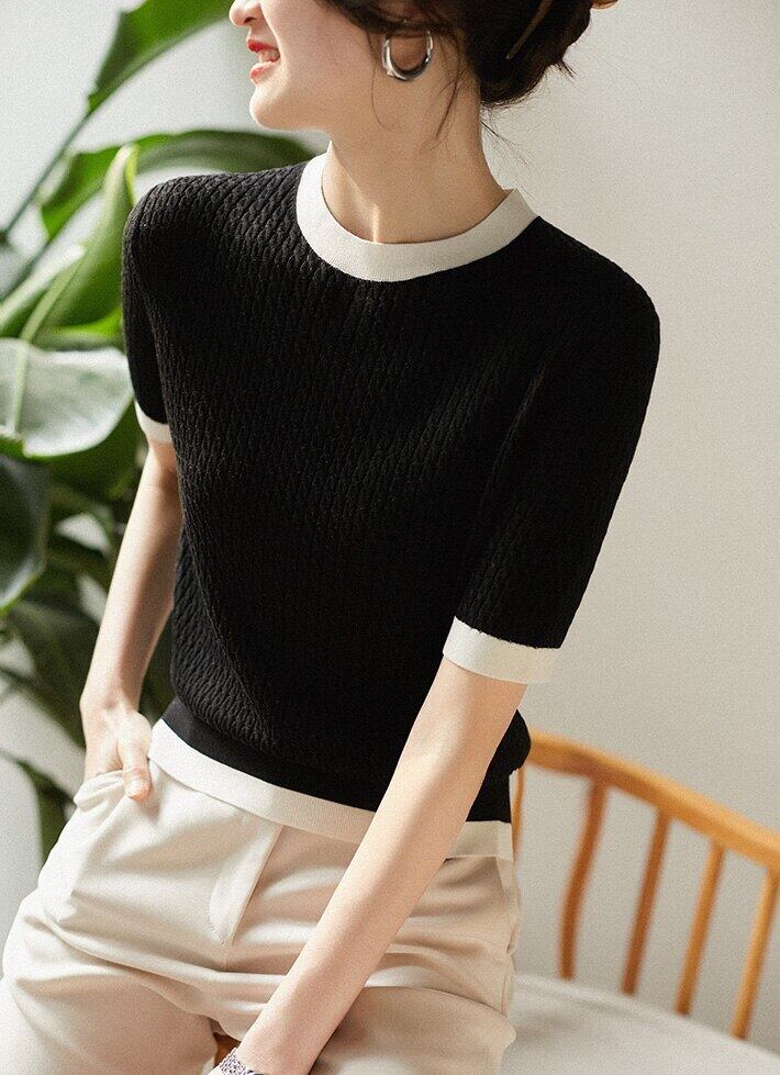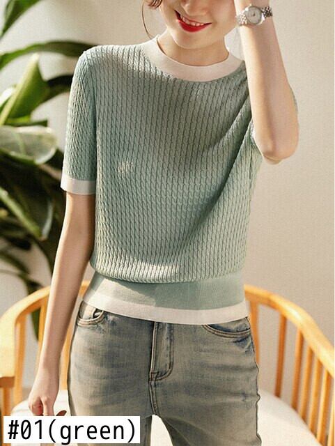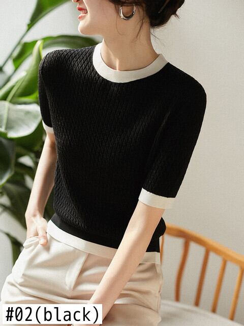 半袖セーターの女性 2022 夏ニットジャンパートップスブラックホワイトプルオーバー女性服プル ショート ハーフスリーブ サマー 夏物 Son38997334206