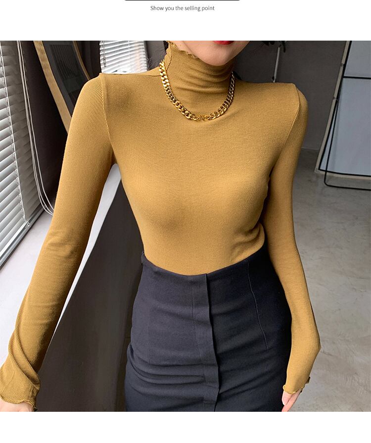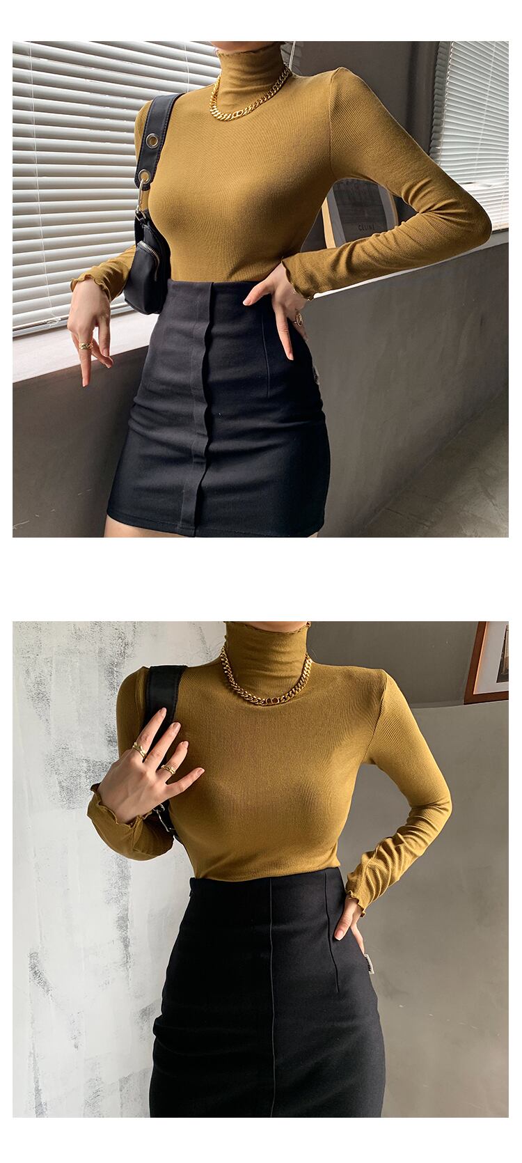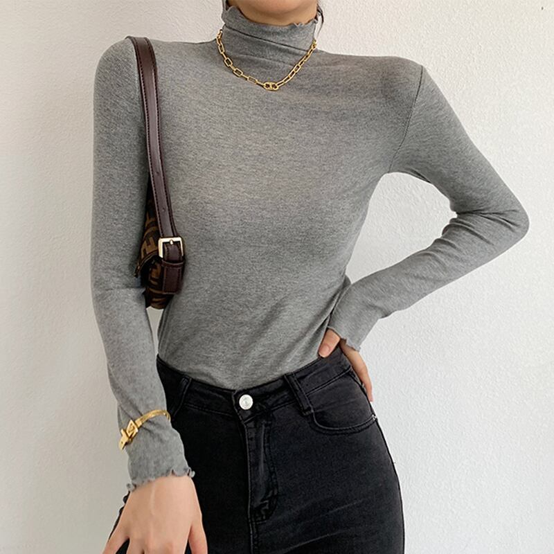 固体タートルネック Tシャツ女性 2022 Sprin 秋の女性の服長袖 Tシャツスリムコットンレディースは、基本的なソフト Tシャツ ロング オータム 秋物 ソリッドカラー Son75988247258