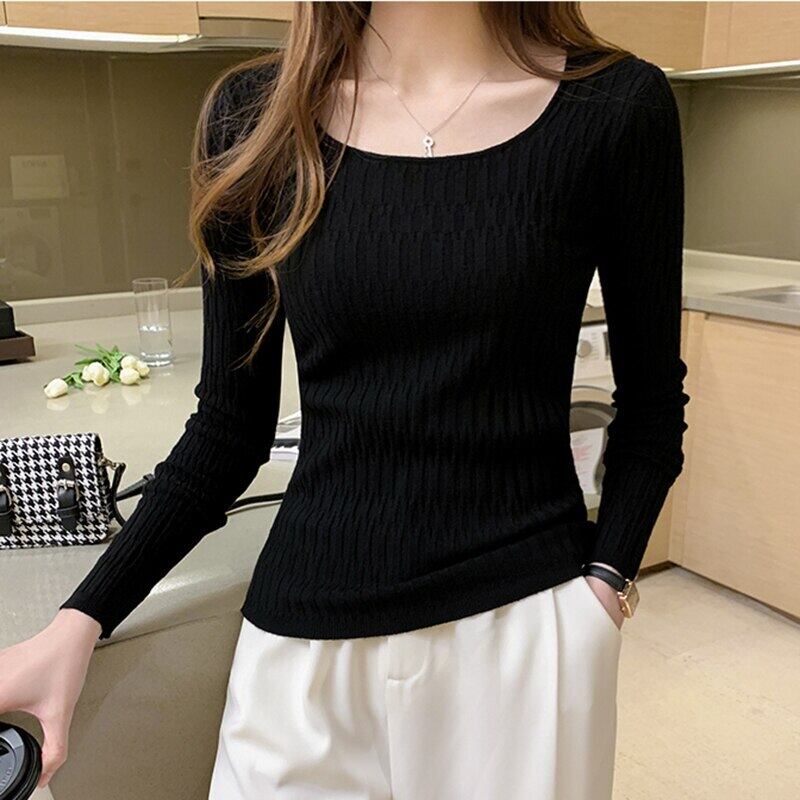 LJSXLS 秋弾性ニットセーター女性 2020 レディース冬服スリム長袖無地プルオーバーセーター ロング エラスティック 伸縮 オータム 秋物 ウィンター 冬物 ソリッドカラー Son14465159858