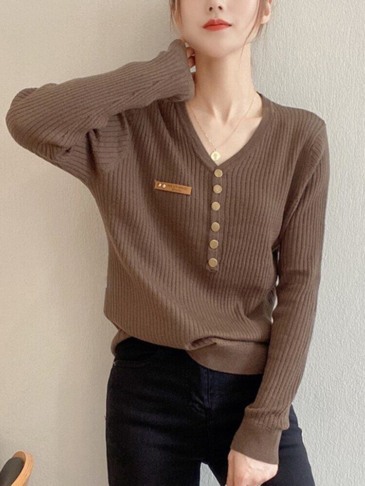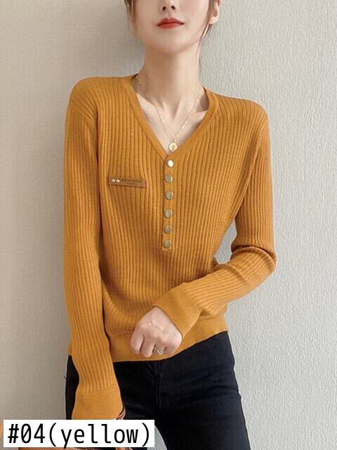 2022 秋冬長袖トッププルオーバーセーター女性ボタンアップトップニットセーターレディース弾性プル ロング エラスティック 伸縮 オータム 秋物 ウィンター 冬物 Son40854130547