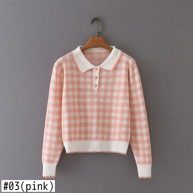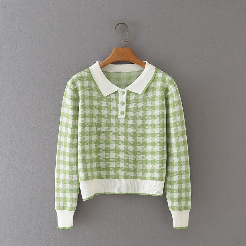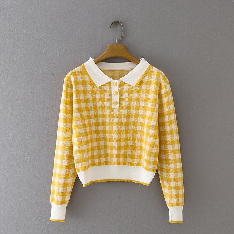 ショートチェック柄セータースタイルプルオーバー女性ニットトップ 2021 秋の服クロップドセーターセーターデ オータム 秋物 Son96142312729