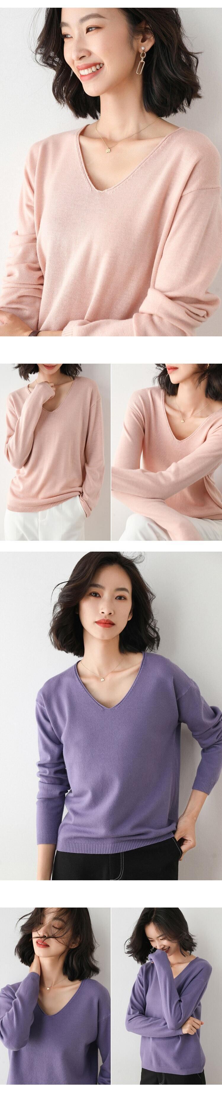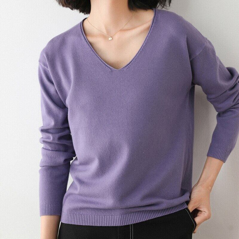 LJSXLS レディース Vネック 無地 ニット プルオーバー 長袖 暖かいセーター 秋冬 ベーシック ルーズセーター プルオーバー ロング オータム 秋物 ウィンター 冬物 ソリッドカラー Son78527399494