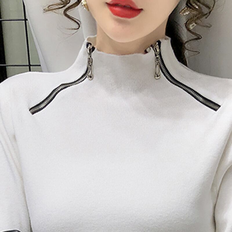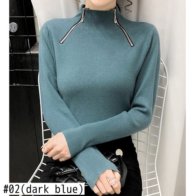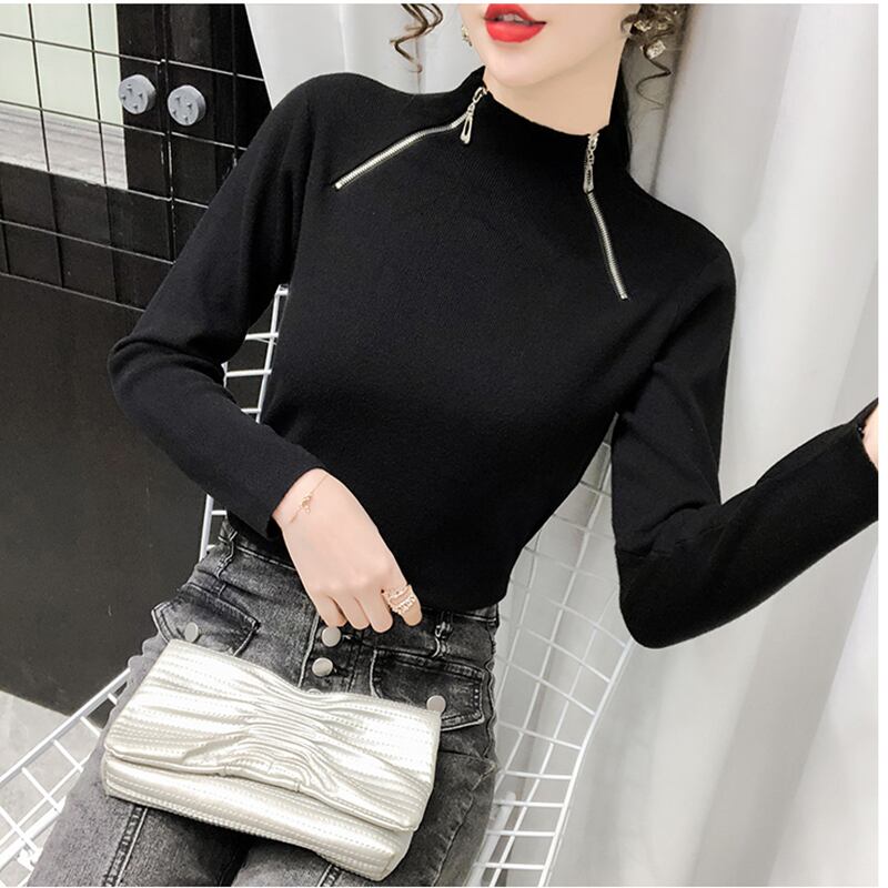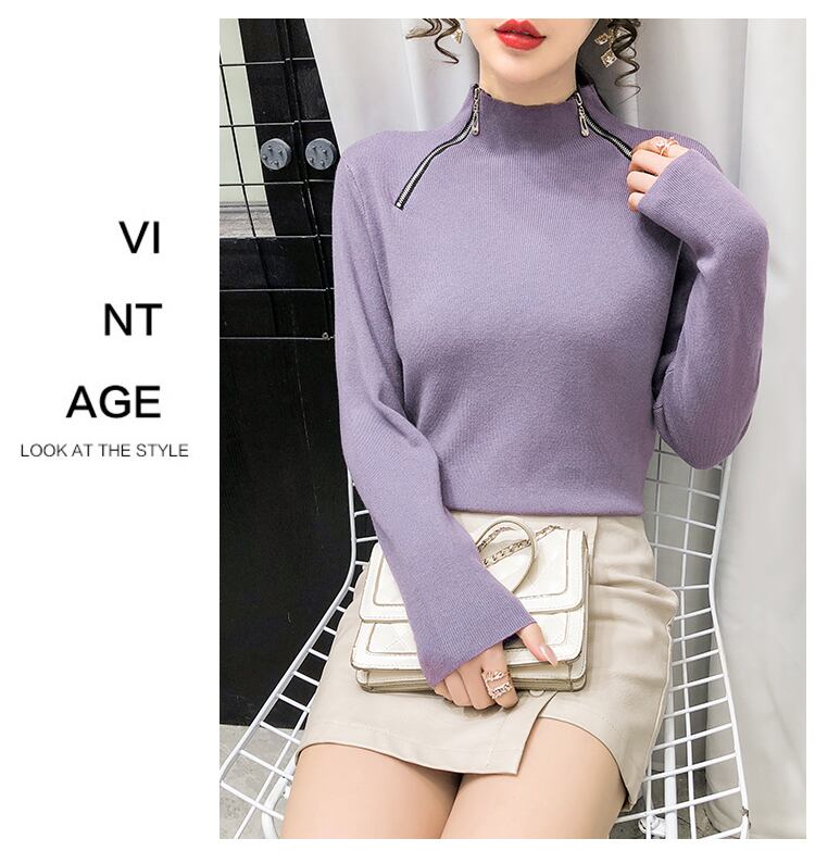2021 ジッパーハーフカラープルオーバー女性セーター長袖スリム弾性ニット固体秋冬ジャンパートップス ロング エラスティック 伸縮 オータム 秋物 ウィンター 冬物 ソリッドカラー Son67316592566