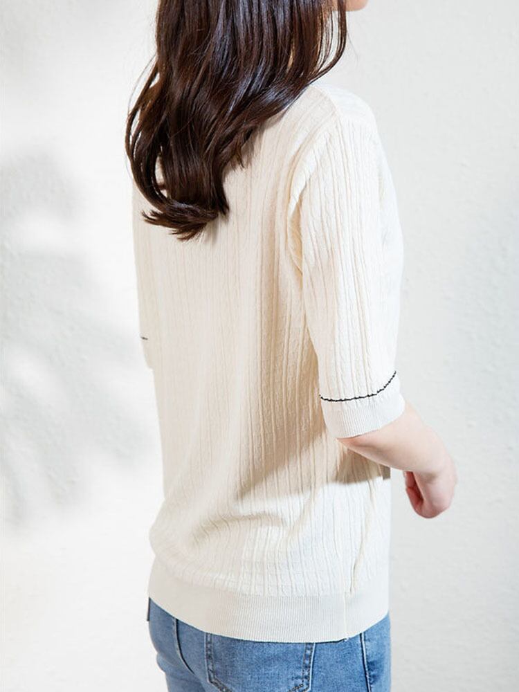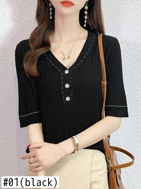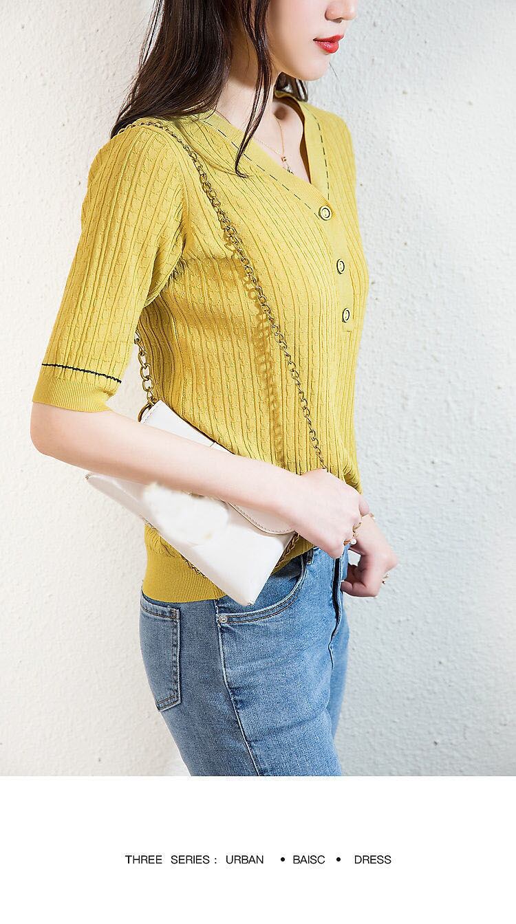 セーター Feminino 2022 夏薄い女性セーター V ネック ボタンアップ トップ半袖セーター ニット トップス ショート ハーフスリーブ サマー 夏物 Vネック Son31159984028