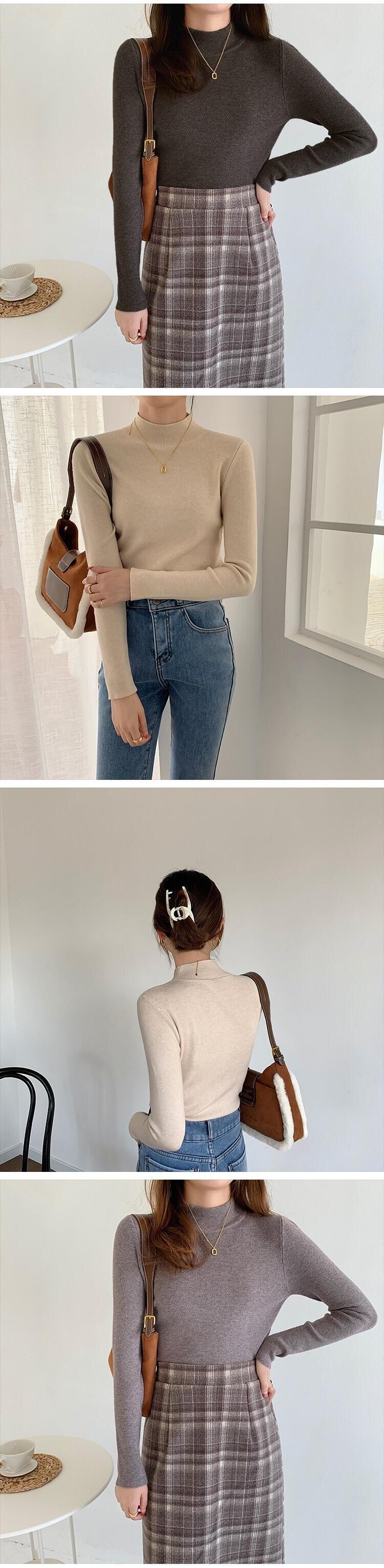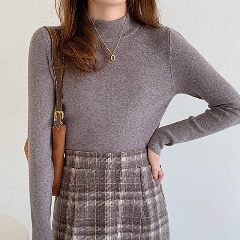 基本的な固体セーター女性秋冬ハーフカラー長袖暖かいニットトップススリムプルオーバーセーターデ ロング オータム 秋物 ウィンター 冬物 ソリッドカラー Son77774959269