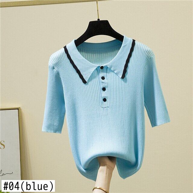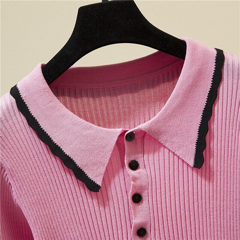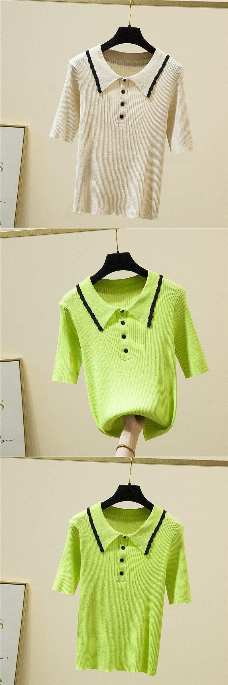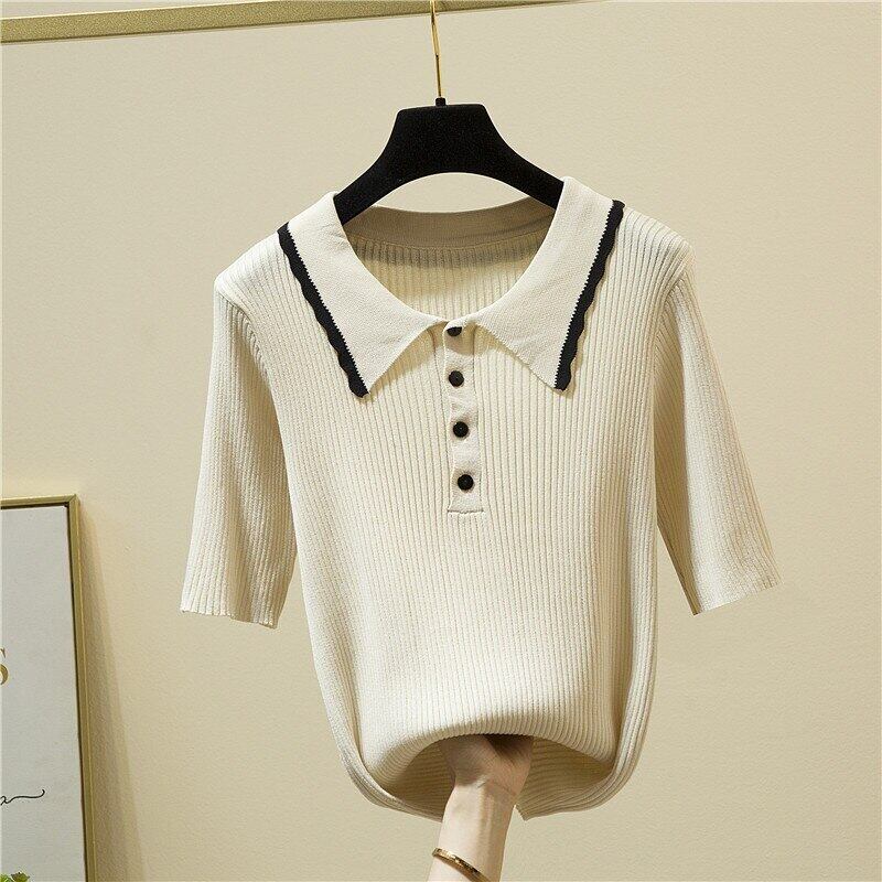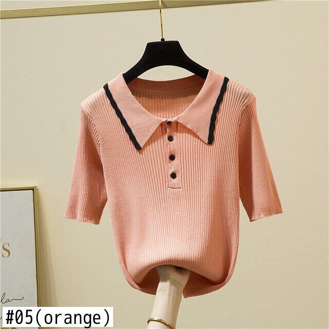 アプリコットピンクニットトップス女性 2022 夏服無地半袖スリムプルオーバーセーターボタン ショート ハーフスリーブ サマー 夏物 ソリッドカラー Son8892713052