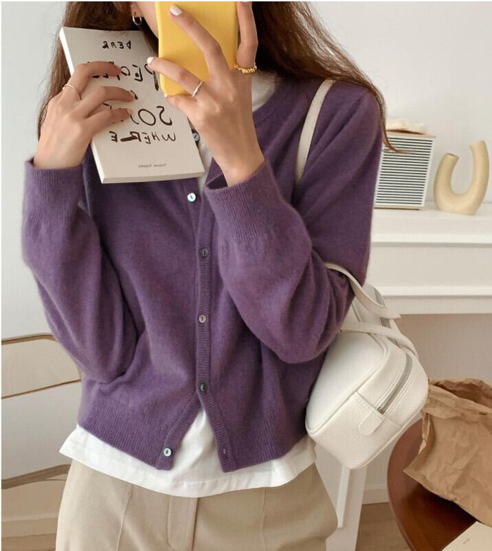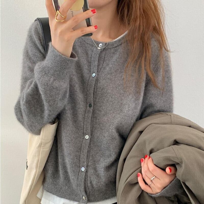 女性服長袖秋冬グレー O ネックニットセーターボタンソフトウォームカーディガンセータートップ ロング オータム 秋物 ウィンター 冬物 Oネック Son99754866002