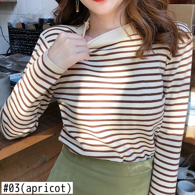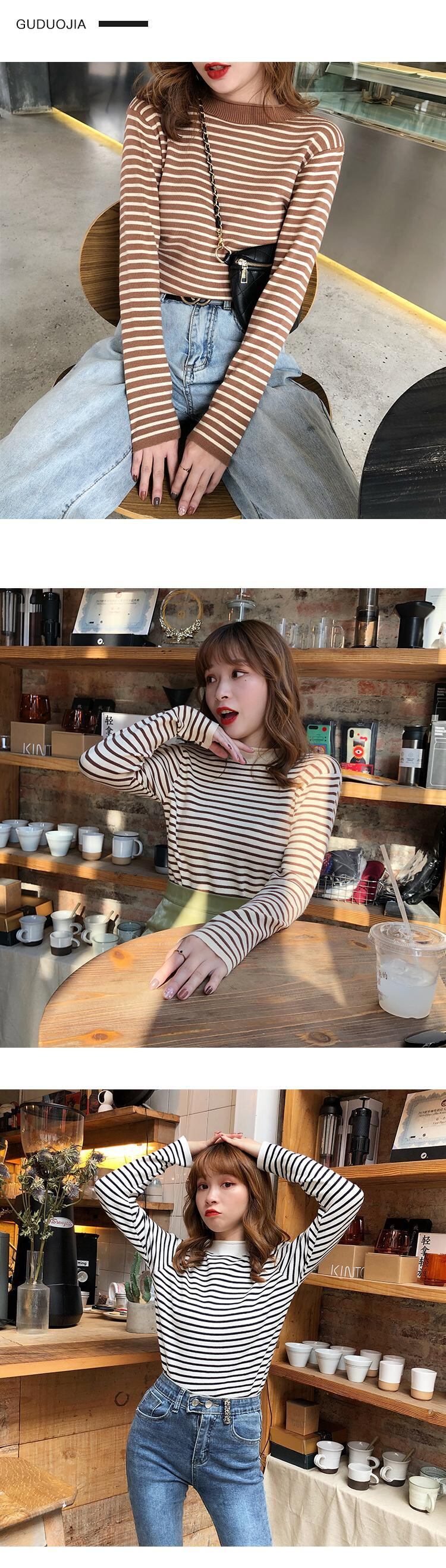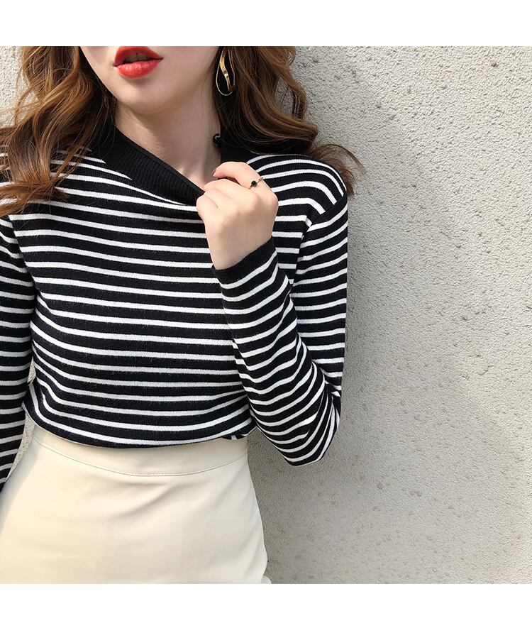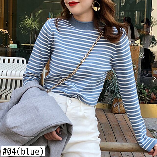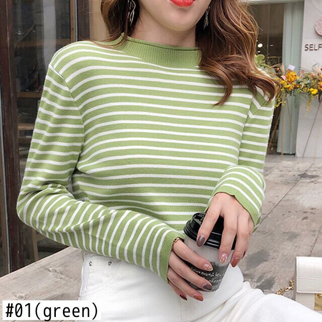 秋ストライプハーフカラーニットセーター女性長袖プルオーバートップスプル冬服 ロング オータム 秋物 ウィンター 冬物 Son36351445015