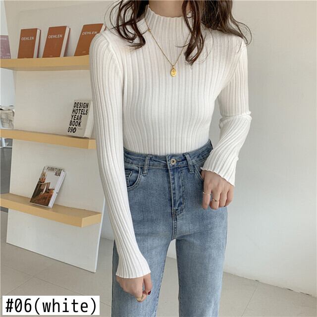 LJSXLS 女性セーター秋ハーフタートルネックセーターソフトソリッドスリムプルオーバーニットトップス 2021 冬服 オータム 秋物 ウィンター 冬物 ソリッドカラー Son72304000571