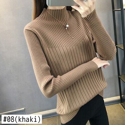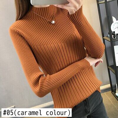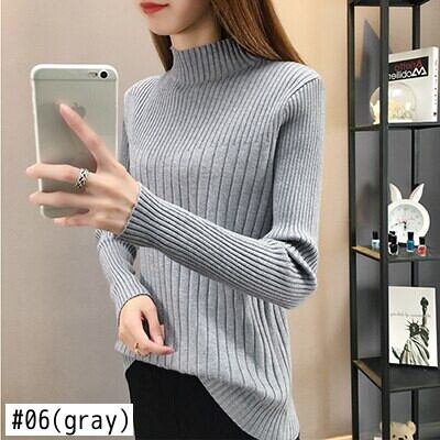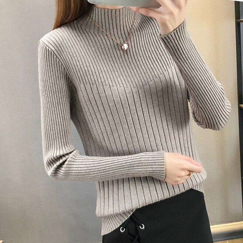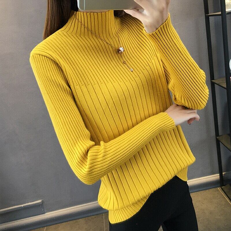 ハーフタートルネックニットセーター女性スリムストライプ弾性秋冬暖かいセーター女性プルオーバー服 エラスティック 伸縮 ウィンター 冬物 Son8649788372
