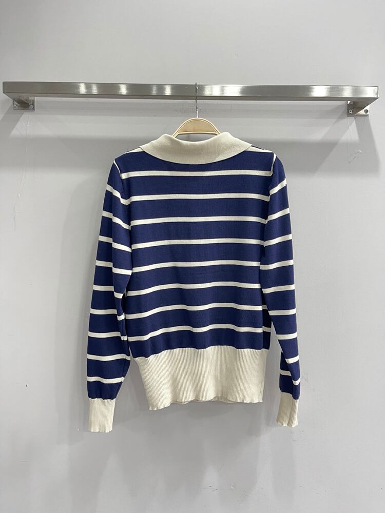 長袖女性ニットトップス秋冬ストライプターンダウン襟プルオーバーセーターセーターデ ロング オータム 秋物 ウィンター 冬物 Son6990524889
