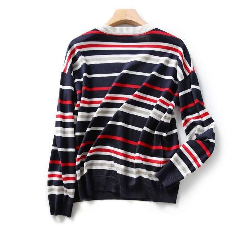 LJSXLS 長袖ニットセータールーズストライプセーター V ネック女性プルオーバーセーター 2021 冬 ロング ウィンター 冬物 Vネック Son90855743097