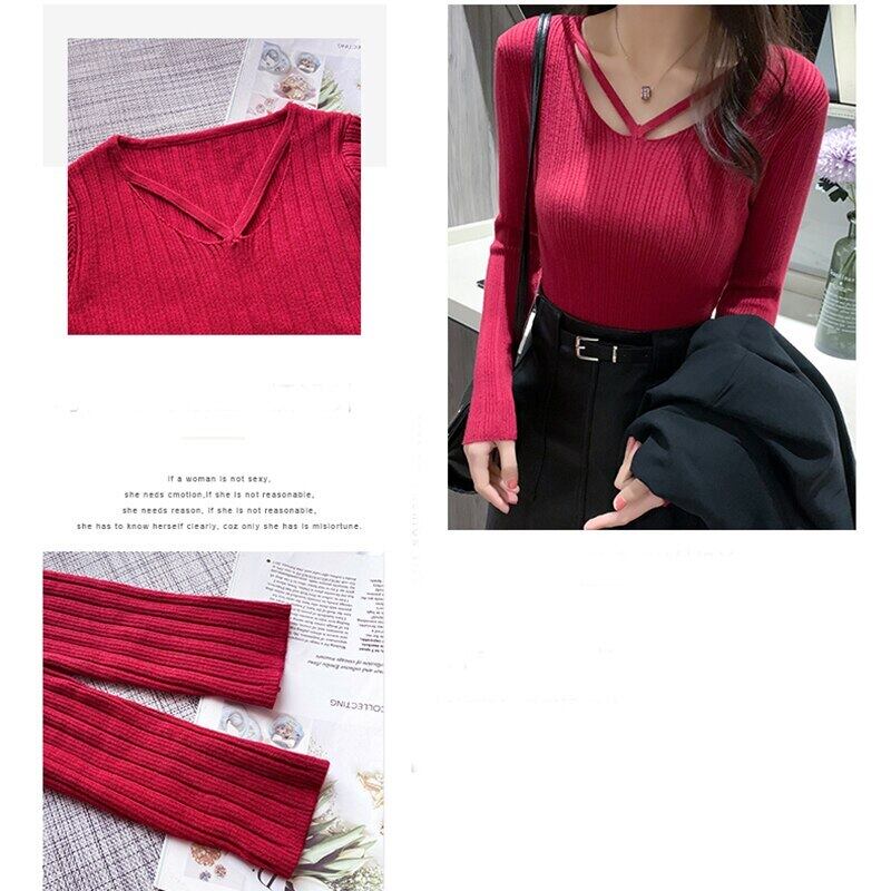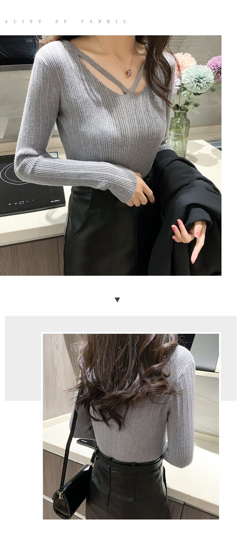 セクシーなスリムニットプルオーバー春秋ソリッド女性セーター長袖トップス V ネックの女性服プル ロング スプリング 春物 オータム 秋物 Vネック ソリッドカラー Son51106026860