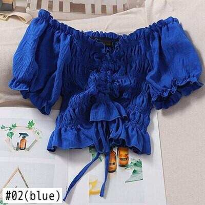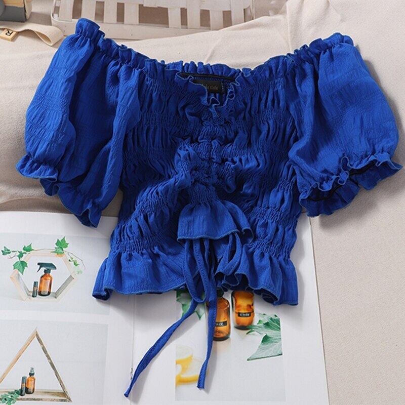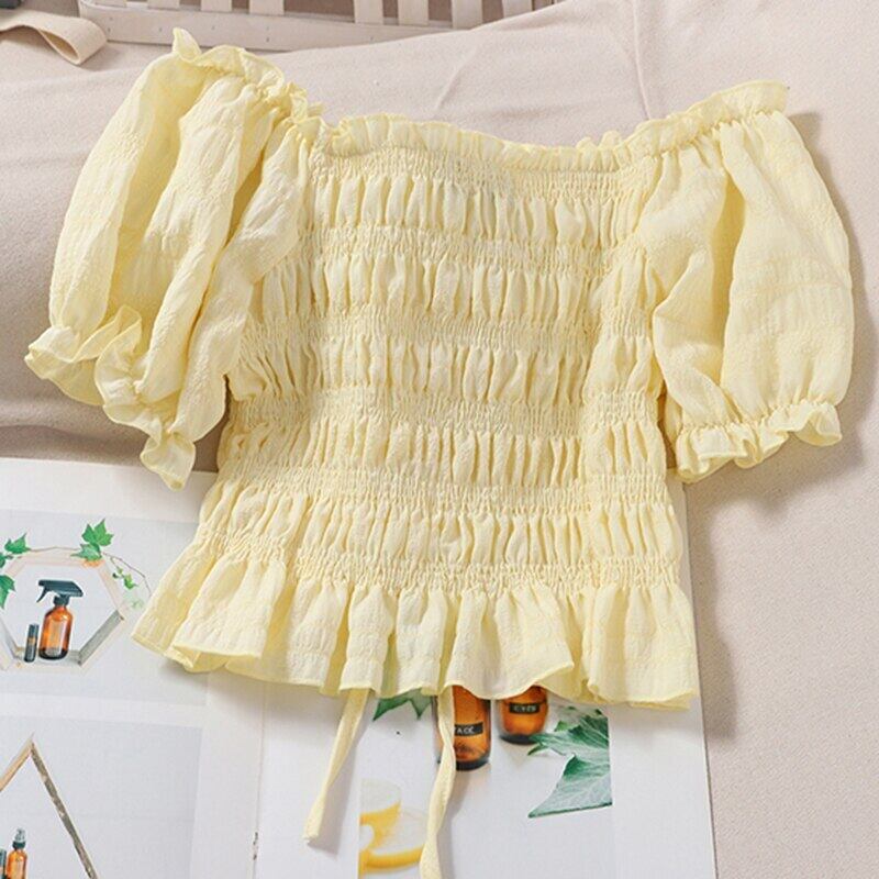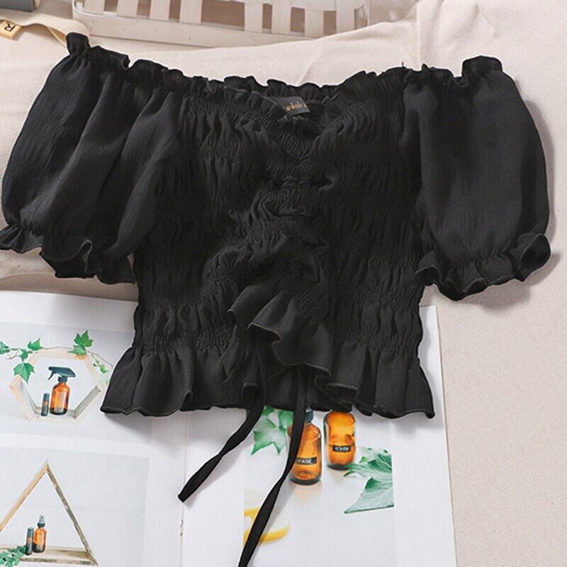 LJSXLS デモーダ 2022 オフショルダーシフォンブラウスセクシーなスリムクロップトップス女性巾着シャツ Son83557299021