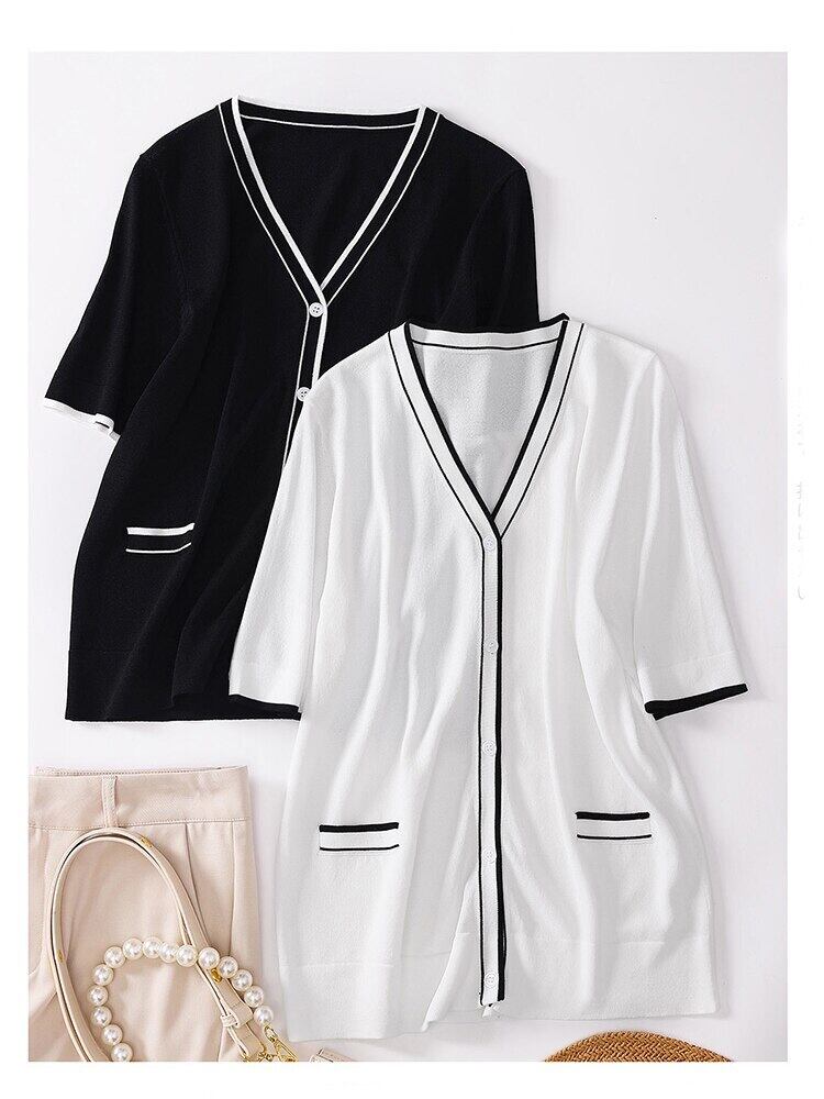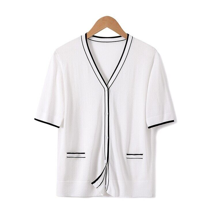LJSXLS 薄型ニットカーディガン女性セーター 2022 春夏 V ネック服半袖トッププルセーターデ ショート ハーフスリーブ スプリング 春物 サマー 夏物 Vネック Son48021817710