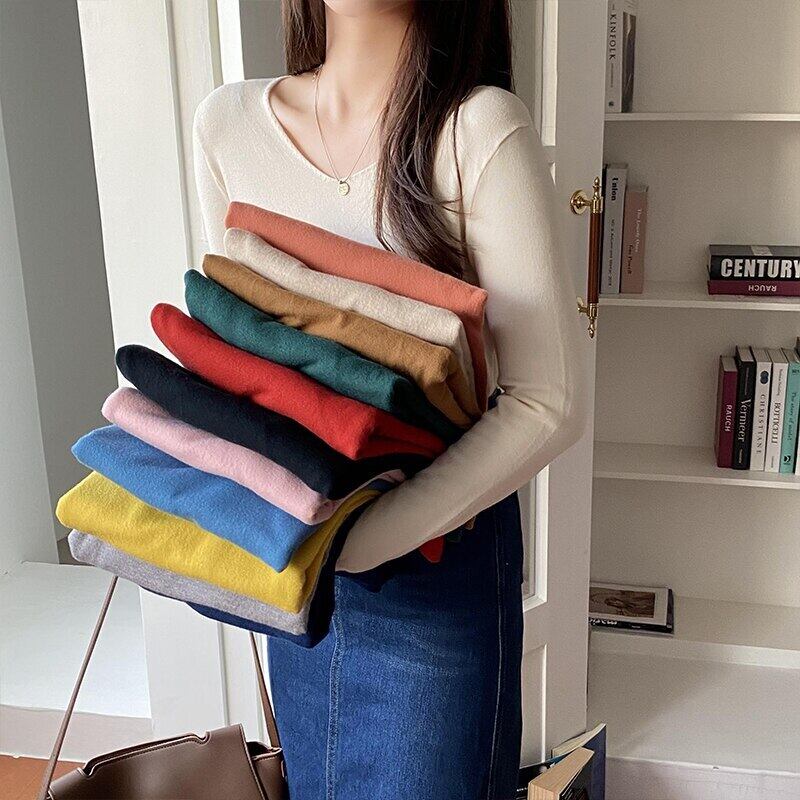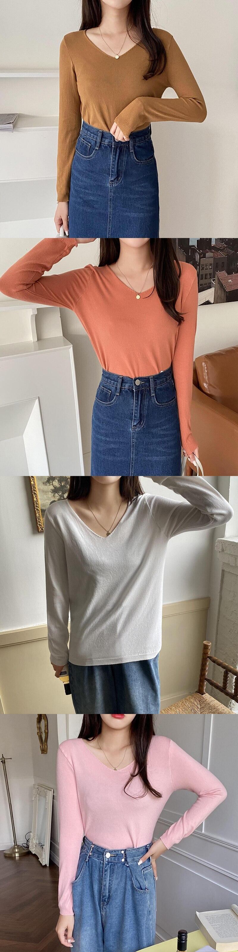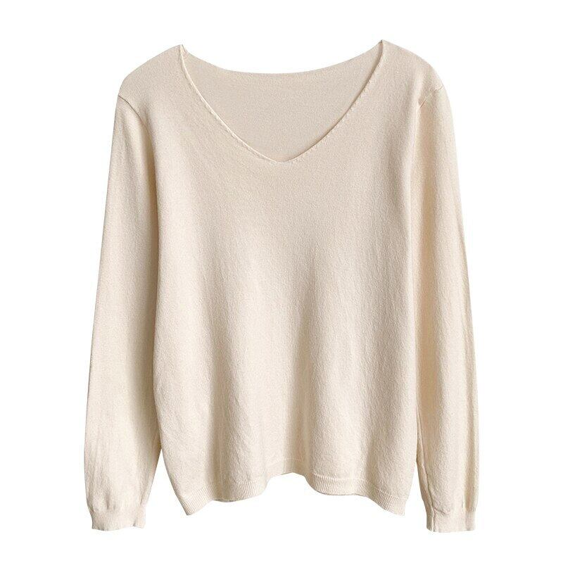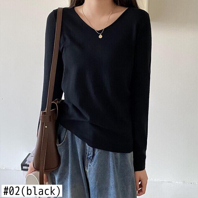 基本的な V ネックプルオーバーセーター女性ニットトップス長袖セーターソフト秋冬服 ロング オータム 秋物 ウィンター 冬物 Vネック Son4877846902